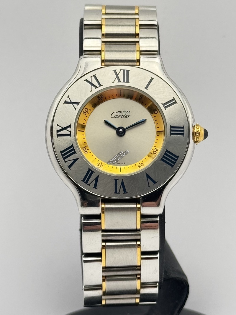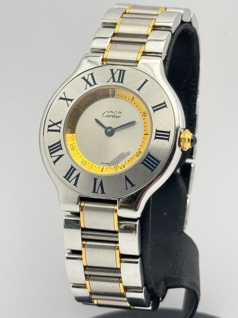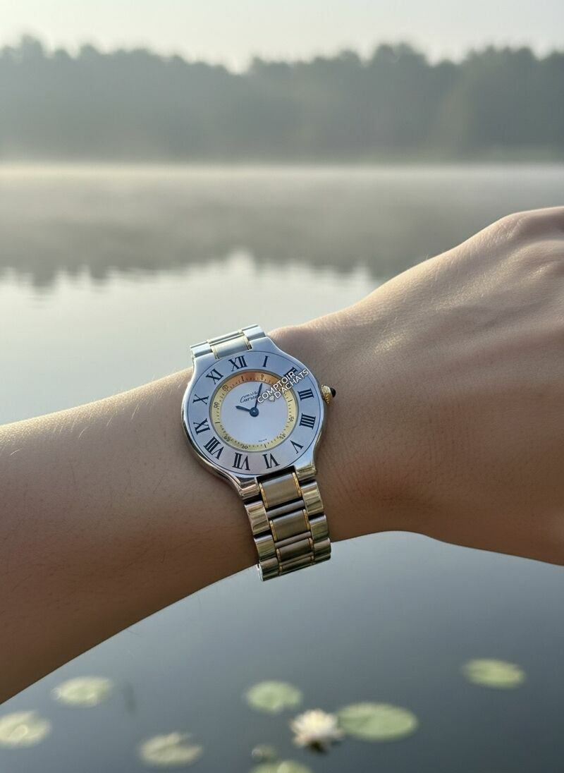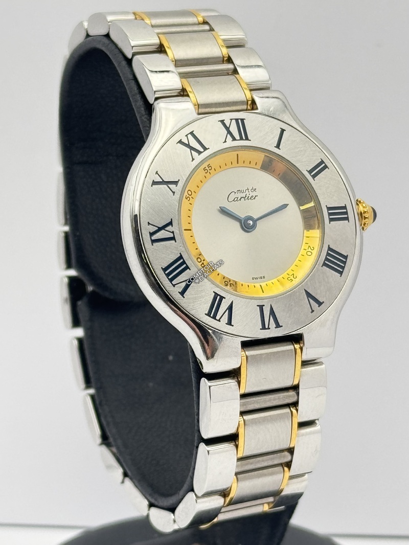 La Cartier Must de 21 en acier avec détails dorés, affiche une allure assumée, à la fois originale et sportive. Ses lignes arrondies reflètent l'élégance créative de la Maison.