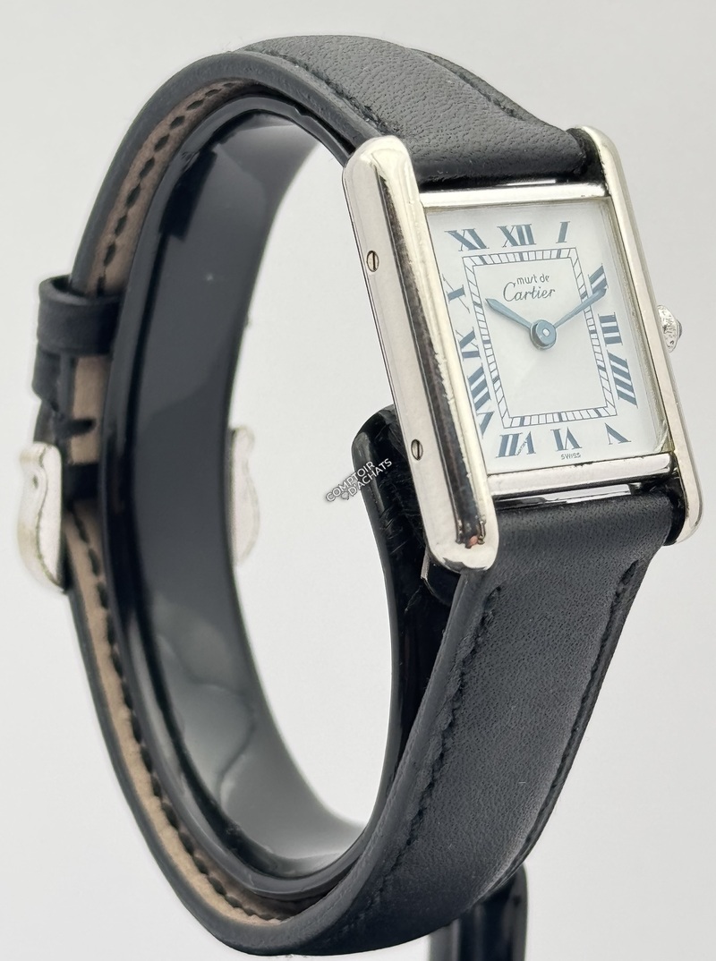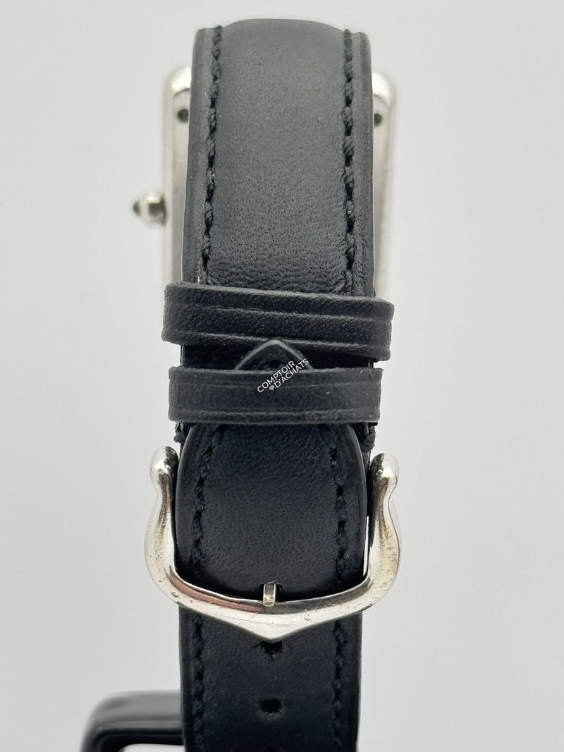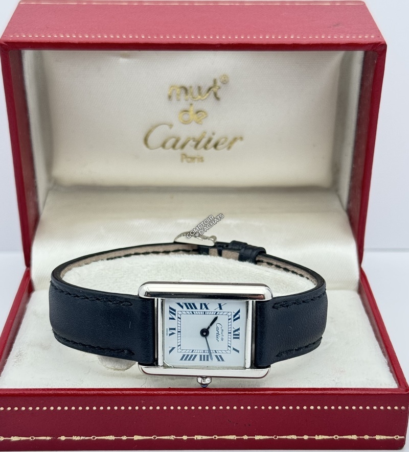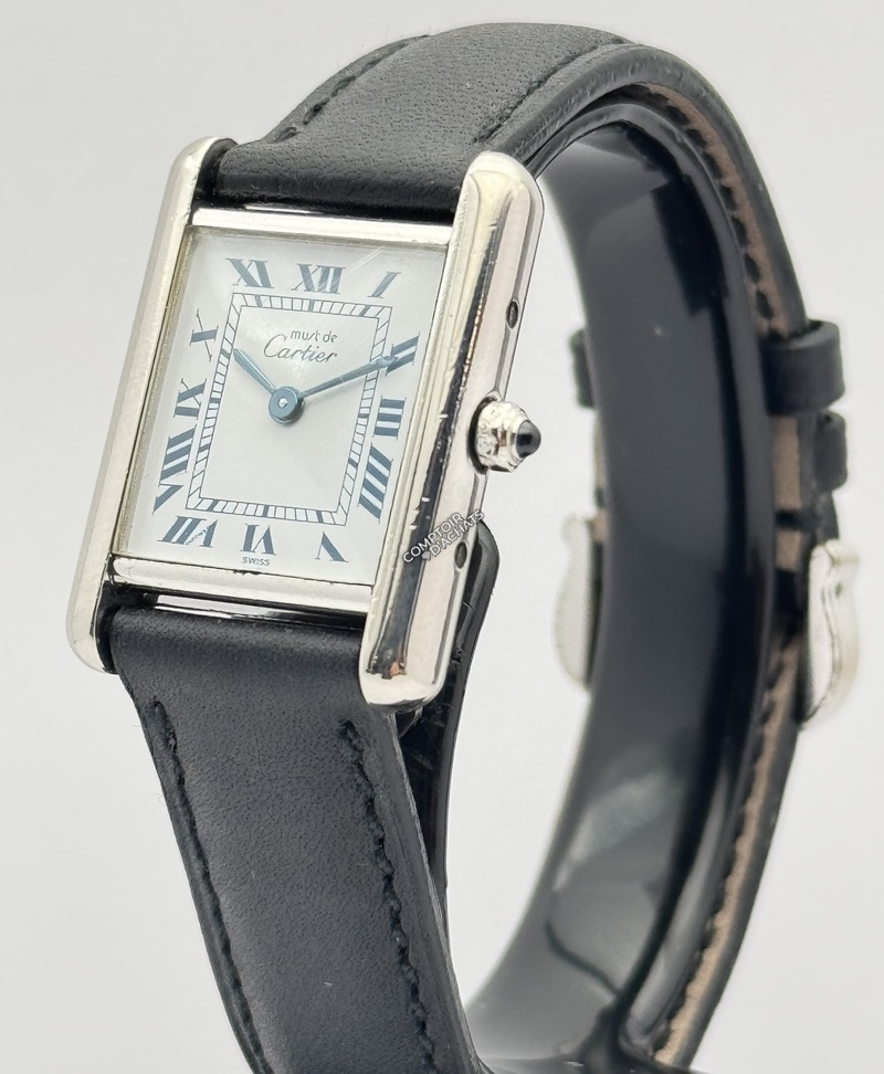 Design et Matériaux : Le boîtier est fabriqué en argent 925 (Vermeil), un choix économique et élégant par rapport à l'or massif, qui a permis à la collection Must de connaître un grand succès. Elle conserve les deux brancards verticaux caractéristiques de la Tank.