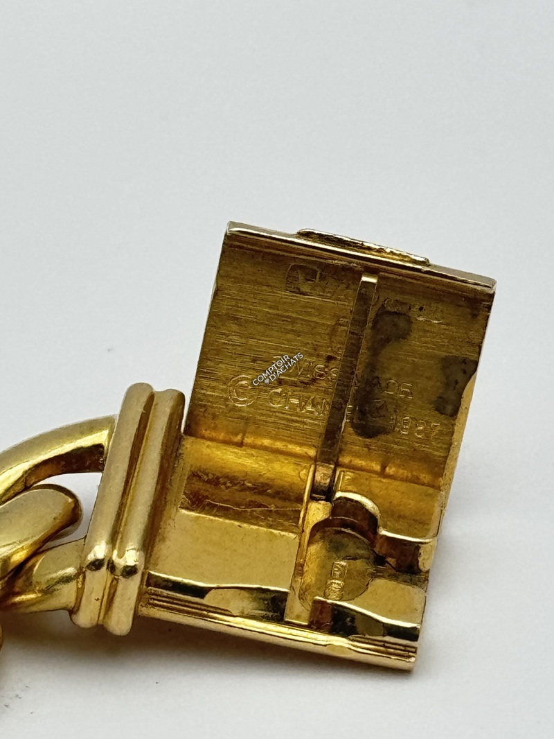 Le Bracelet Gourmette : Une pièce de haute joaillerie. Composé de maillons entrelacés en or, il offre une souplesse et un éclat incomparables.
