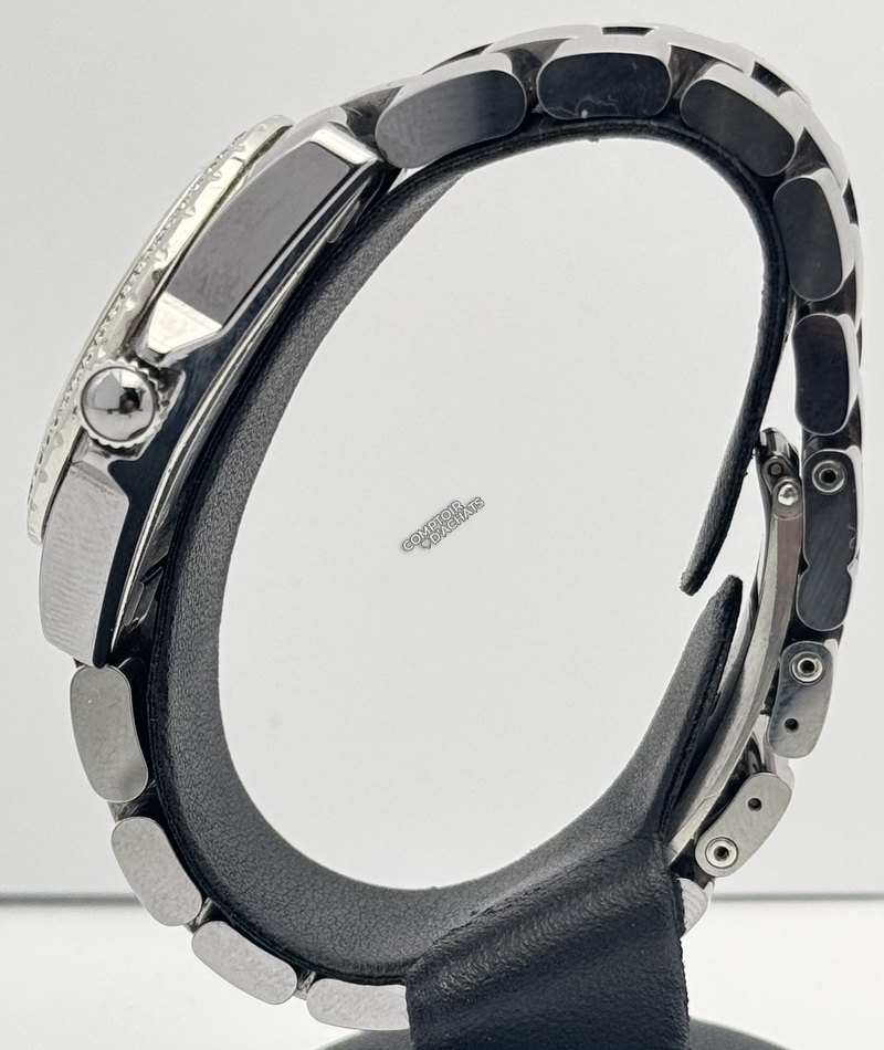 Boîtier et Bracelet : La montre (33 mm) est fabriquée en céramique Chromatic, un matériau exclusif qui confère à la pièce une couleur grise unique aux reflets changeants et métalliques. Ce matériau est réputé pour sa dureté extrême et sa résistance aux rayures.