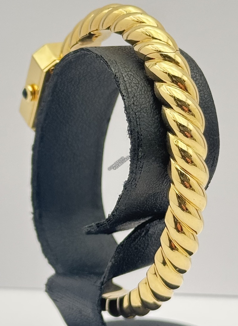 Le Bracelet "Triple Rang" C'est la signature de cette référence H11048. Contrairement à la version classique, ce bracelet est composé de trois rangs de chaînes en acier doré entrelacées.