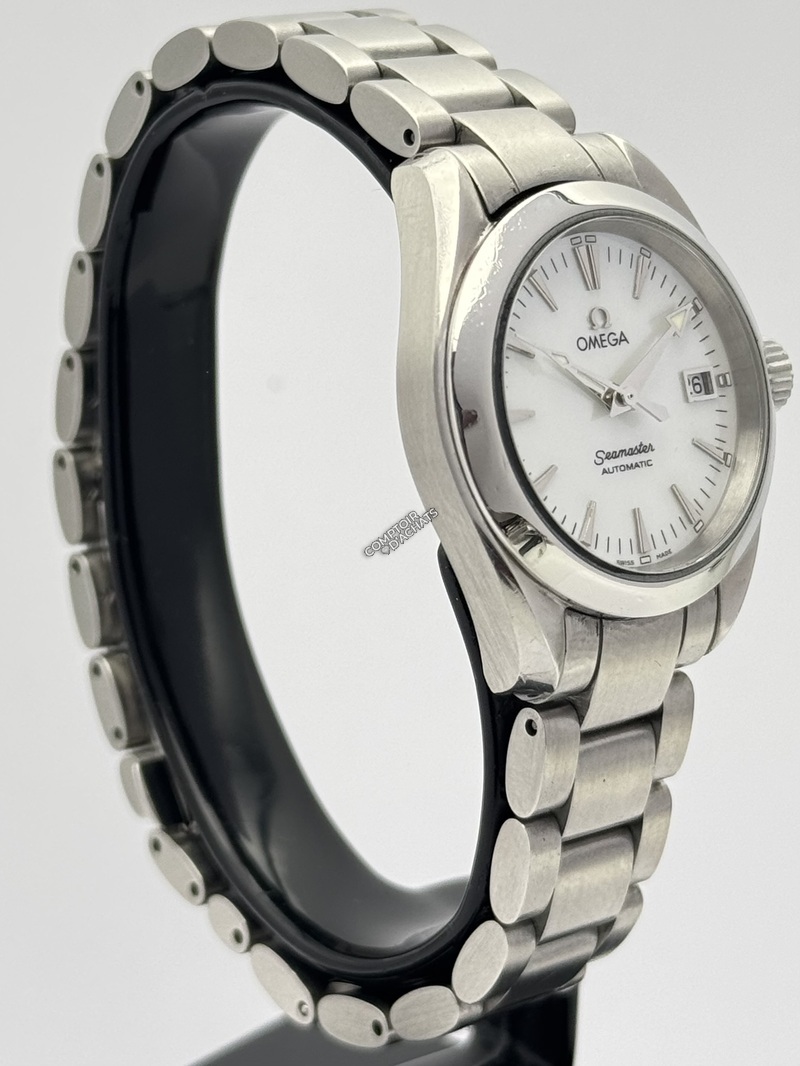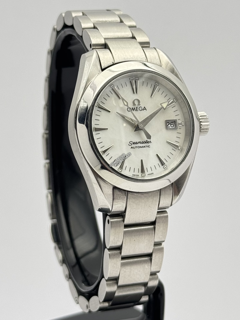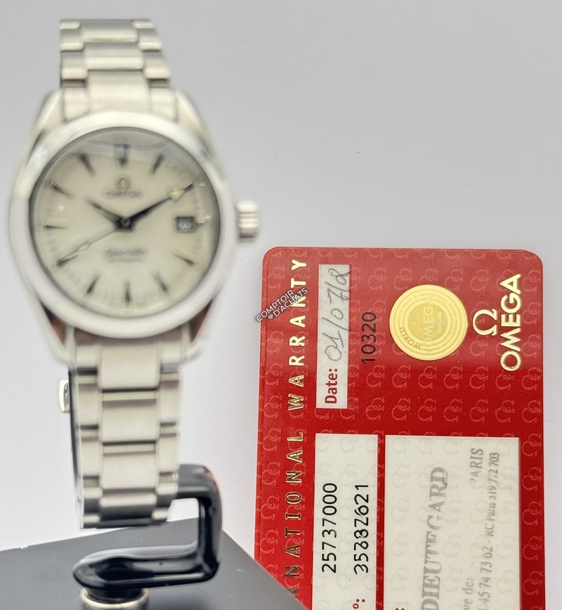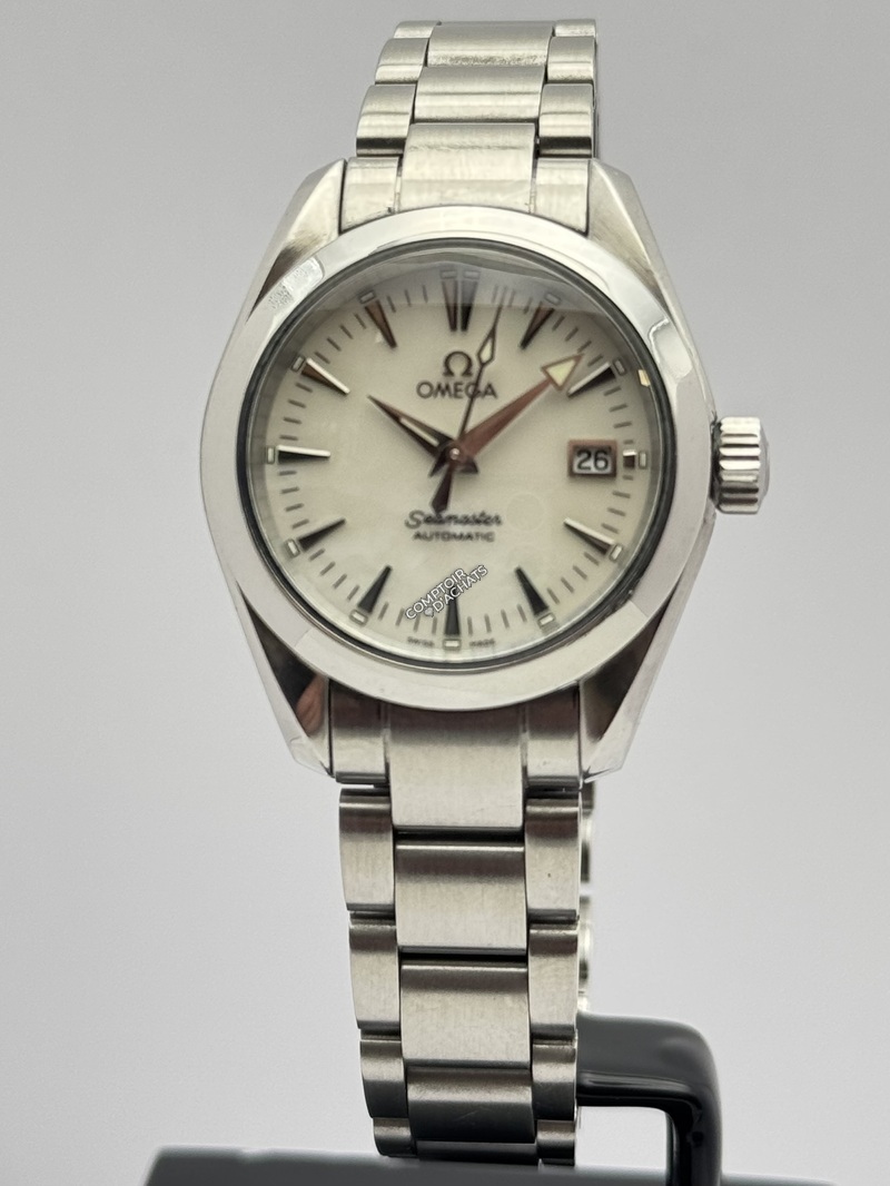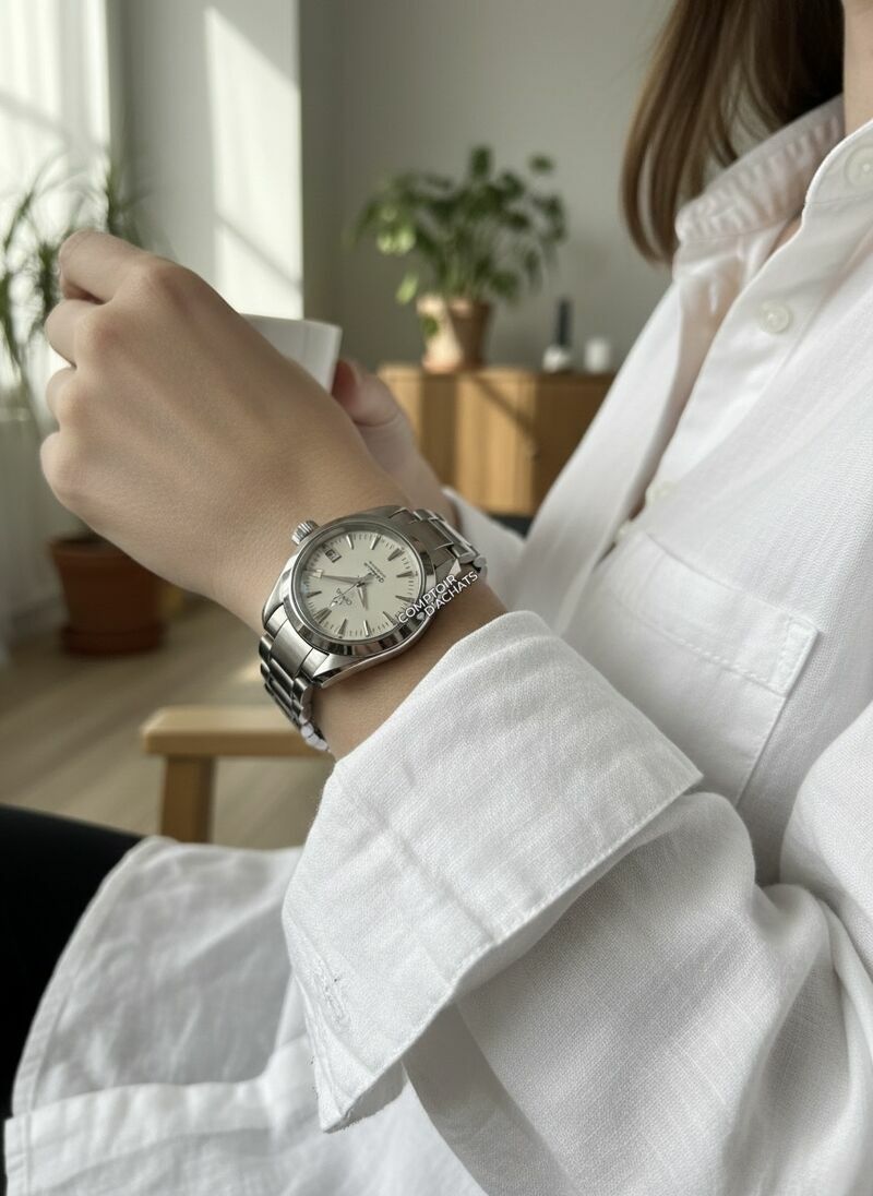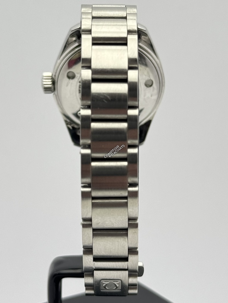 L'Omega Seamaster Aqua Terra, référence 2573.70.00, est une pièce d'horlogerie raffinée qui incarne l'élégance discrète et la polyvalence. Conçue spécifiquement pour les femmes, elle allie l'héritage maritime de la gamme Seamaster à une esthétique "bijou" plus citadine.