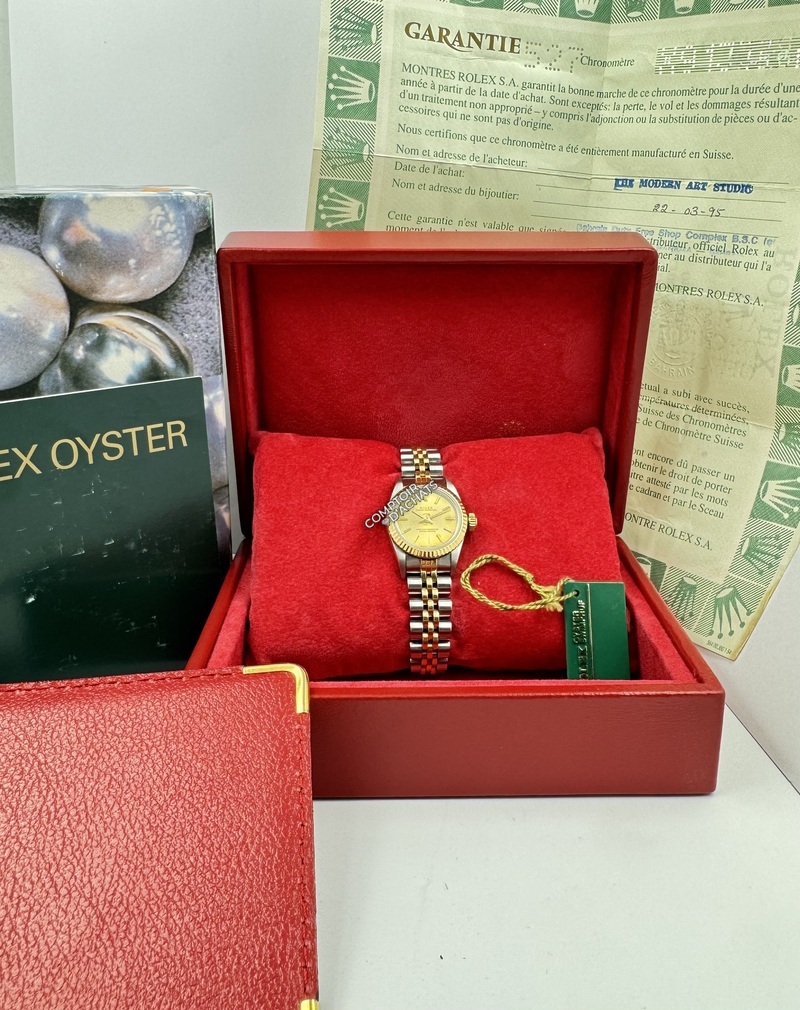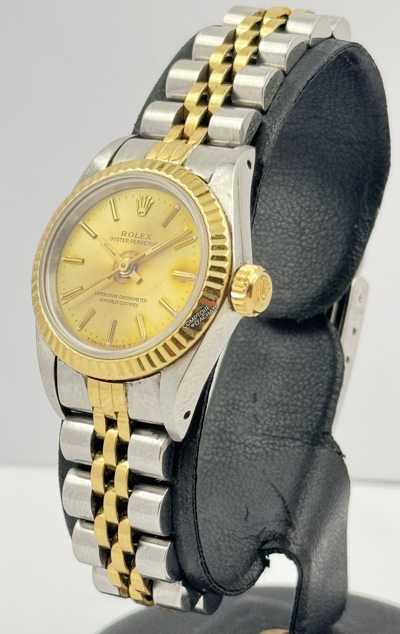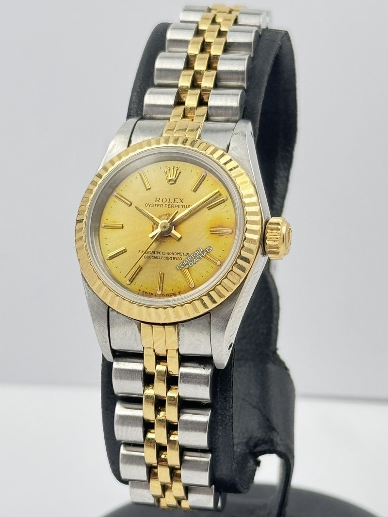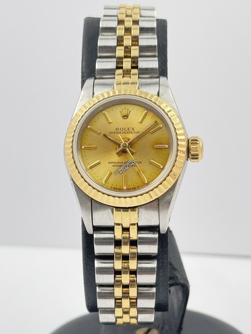 Rolex Oyster Perpetual Lady - Réf. 67193 - 1995, modèle Rolesor alliant acier Oystersteel (904L) et or jaune 18k, symbole de l’élégance intemporelle Rolex.
