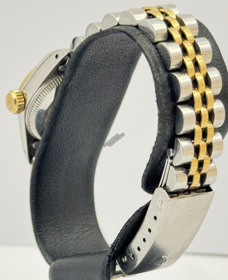 Montée sur bracelet bicolore type Jubilee (5 mailles) avec boucle déployante Rolex.
