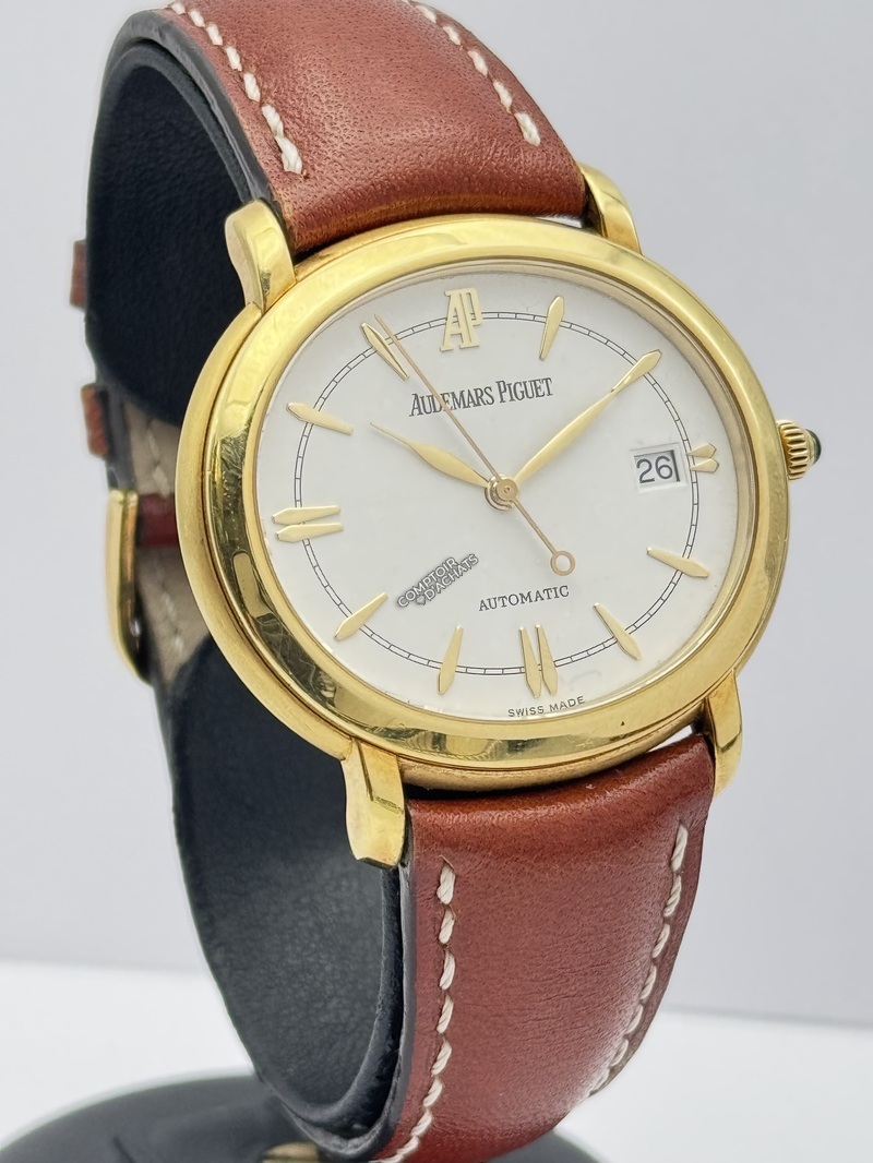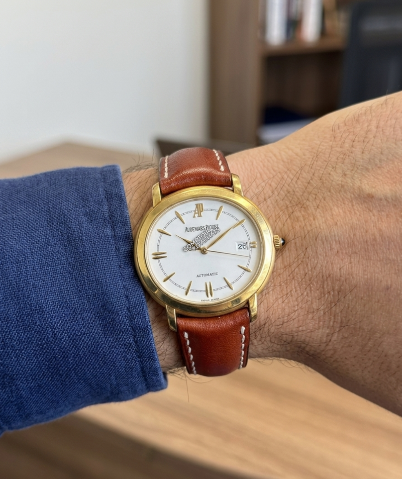 Lancée en 1995 pour célébrer l'approche du troisième millénaire, la collection Millenary d'Audemars Piguet rompt avec les codes traditionnels grâce à son boîtier néoclassique de forme elliptique. Cette référence 14908 est une pièce de collection qui allie l’audace géométrique à la finesse de la haute horlogerie suisse.