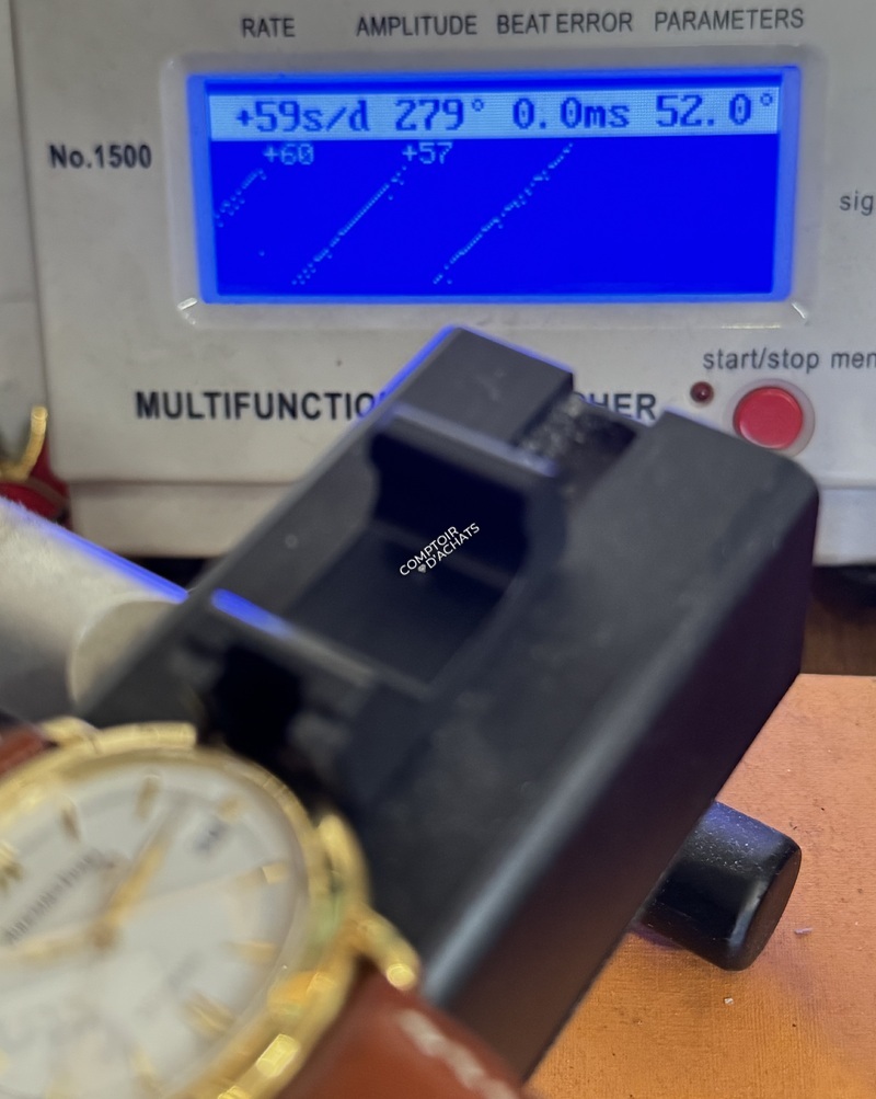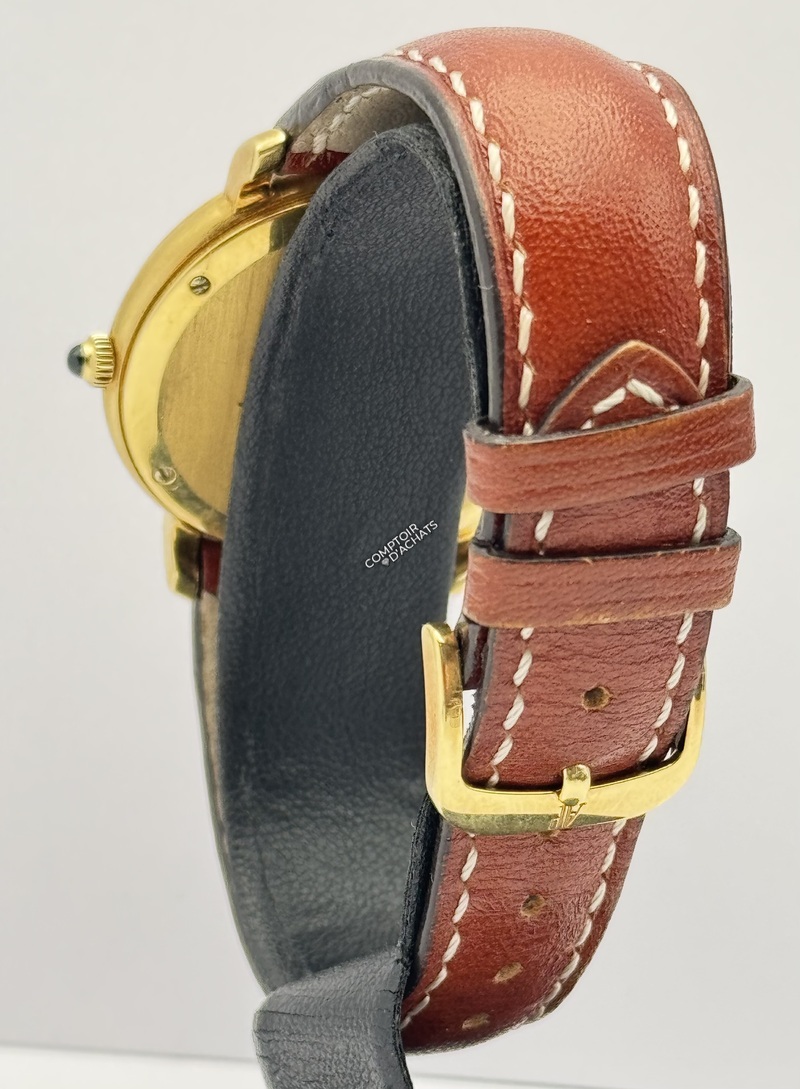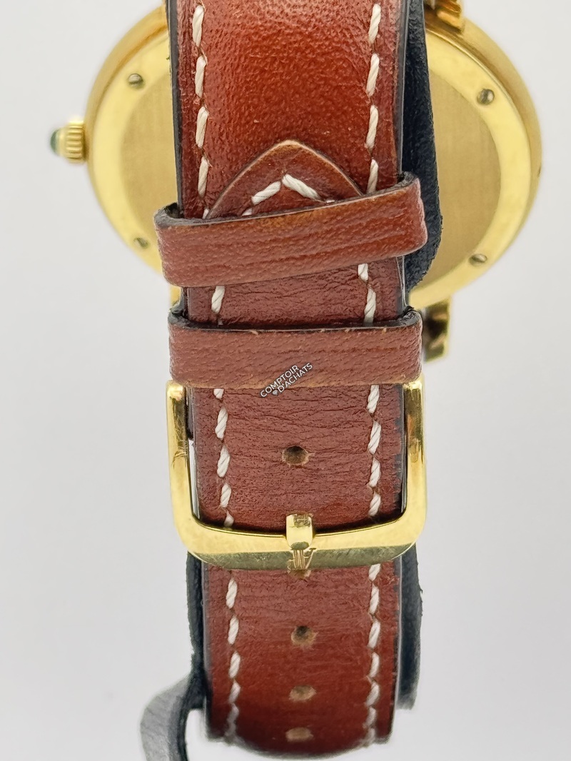 Bracelet : Bracelet d'origine en cuir (alligator), conservant l'esthétique authentique voulue par la manufacture. Boucle ardillon or d'origine.