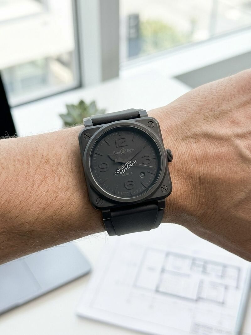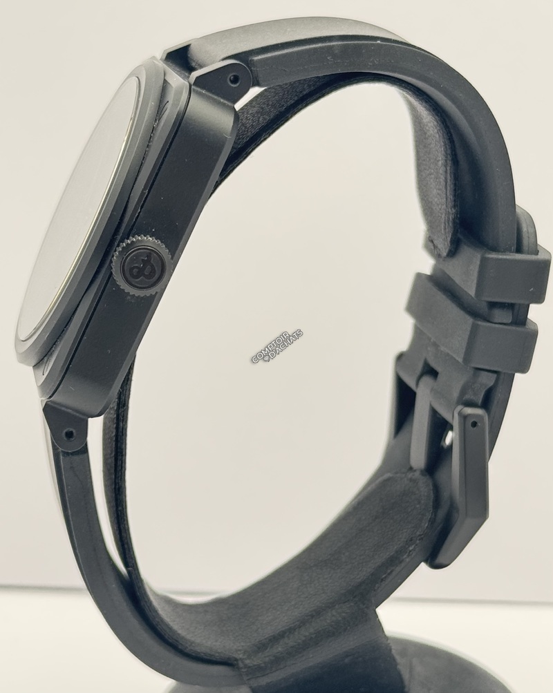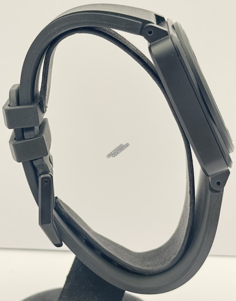 Montre entièrement noire au style inspiré d’un cockpit d’avion, elle reste parfaitement lisible grâce à ses finitions contrastées, s’adapte aussi bien à un look streetwear qu’à une tenue formelle et, grâce à sa conception en céramique, conserve son apparence intacte au fil des années.