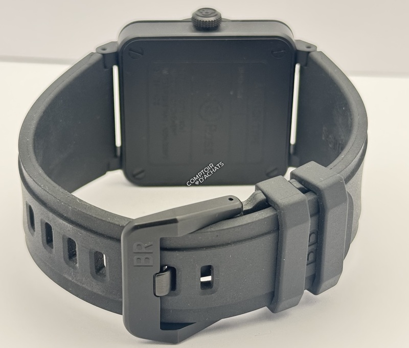 Le Boîtier : Un carré de 41 mm en céramique noire mate. La céramique est préférée à l'acier car elle est inrayable et sa couleur est teintée dans la masse.