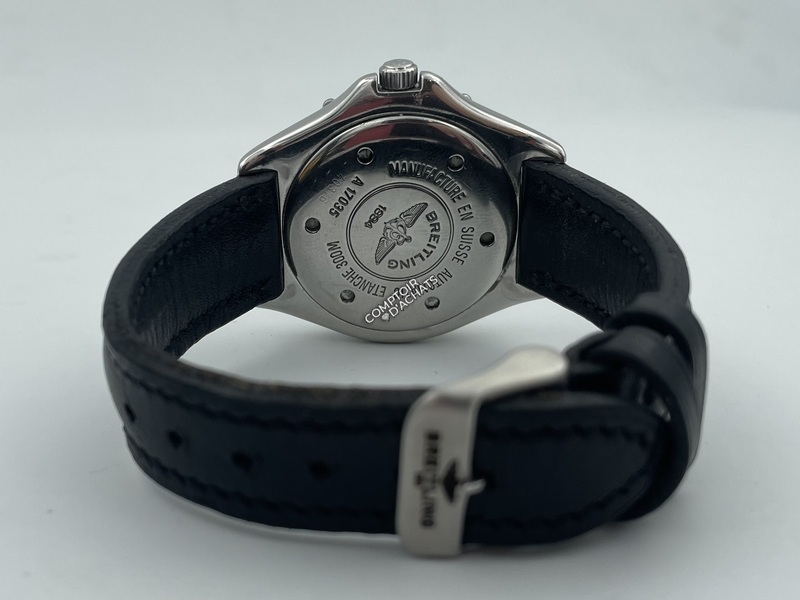 Montre Hommes Breitling Colt reference A17035 Automatique Bleu · boîtier en acier, 38 mm · sportif cadran bleu foncé · design marquant · une valeur de reconnaissance élevée · bracelet cuir noir.