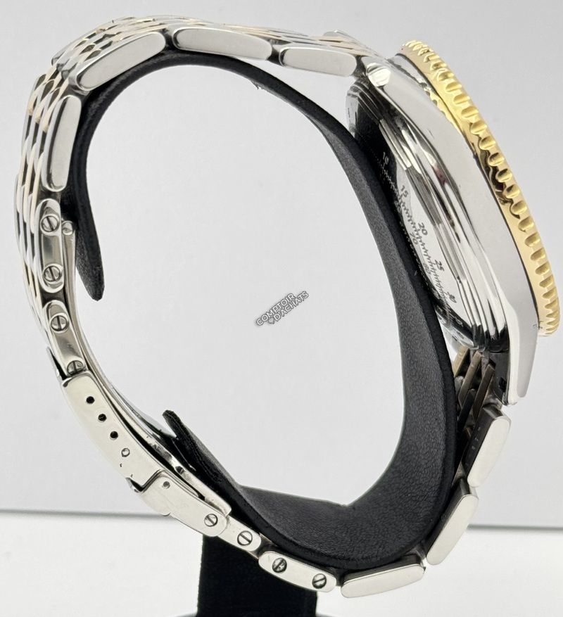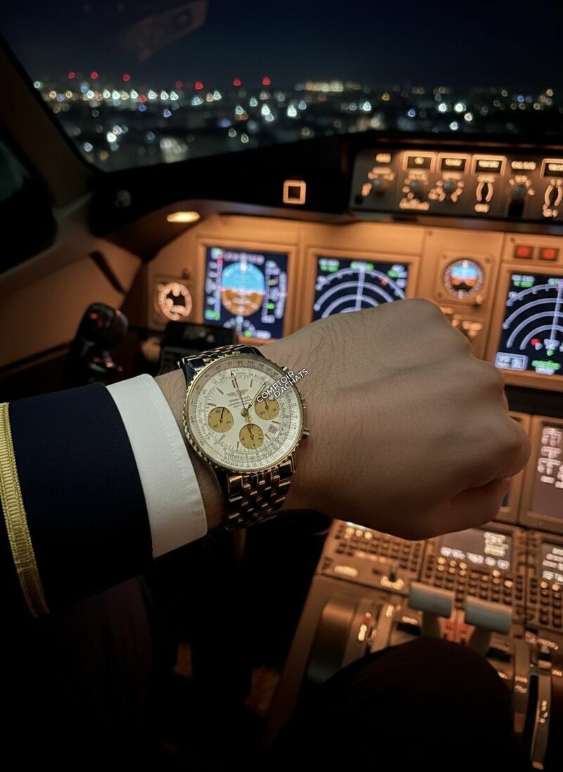 Modèle alliant parfaitement outil technique et montre de luxe, la lunette en or apportant chaleur et prestige au design iconique de Breitling.