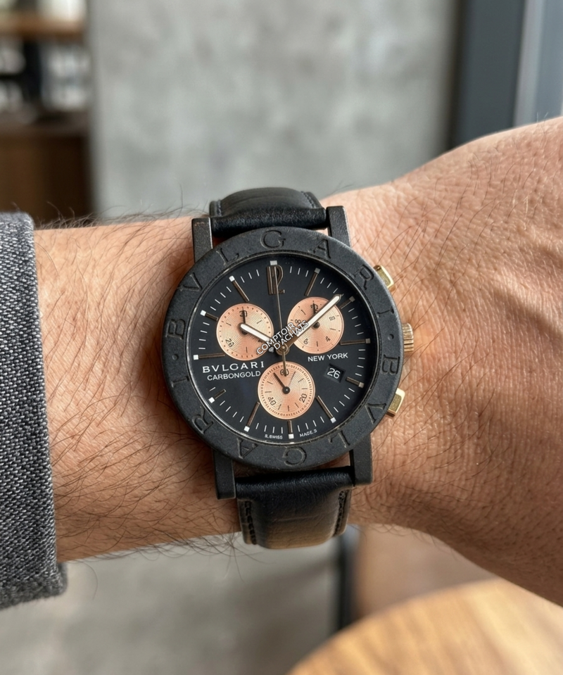 La Carbongold est une pièce charnière dans l'histoire de Bvlgari. Lancée initialement comme un cadeau ultra-exclusif pour les meilleurs clients de la marque, elle est devenue une icône du "sport-chic". La version New York est particulièrement prisée pour son équilibre parfait entre l'aspect brut du carbone noir et l'élégance intemporelle de l'or rose.