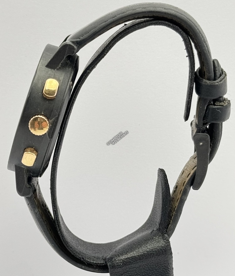 Détails en Or : Les poussoirs, la couronne et la plaque latérale (généralement gravée du numéro de série) sont réalisés en or rose 18 carats.