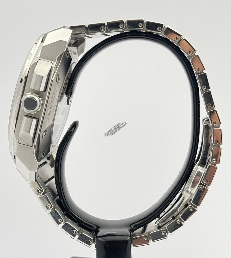 Sous l'apparence d'une montre fabriquée dans la plus pure tradition horlogère, se cache le dispositif complexe d'un chronographe à haute fréquence intégré.