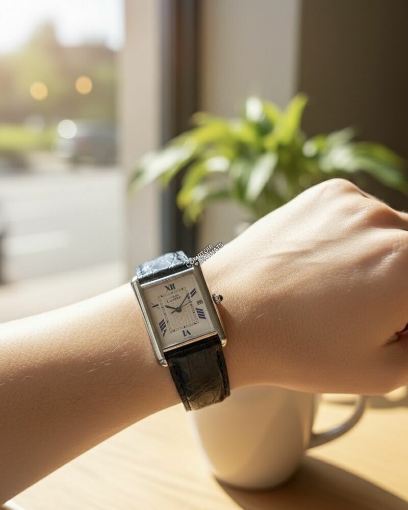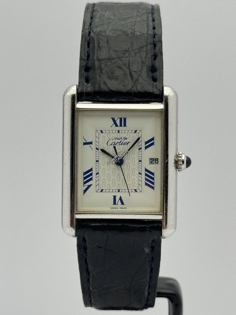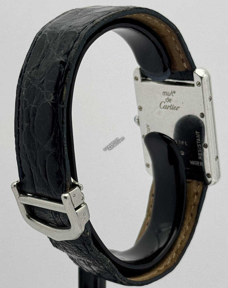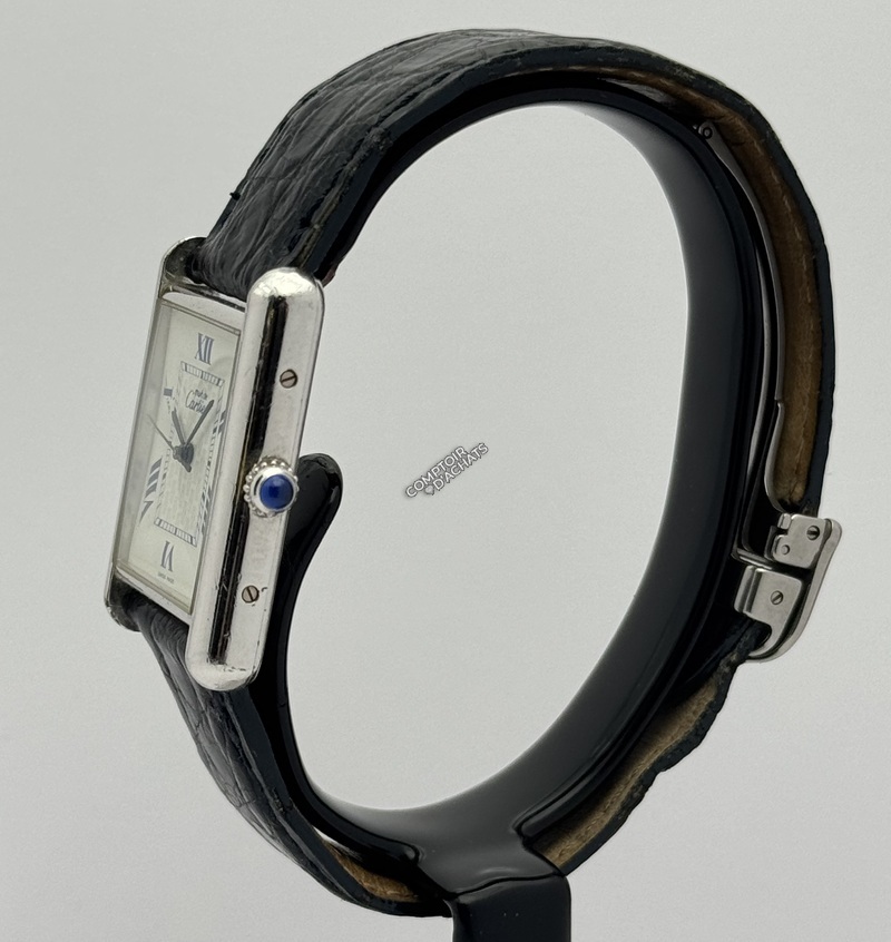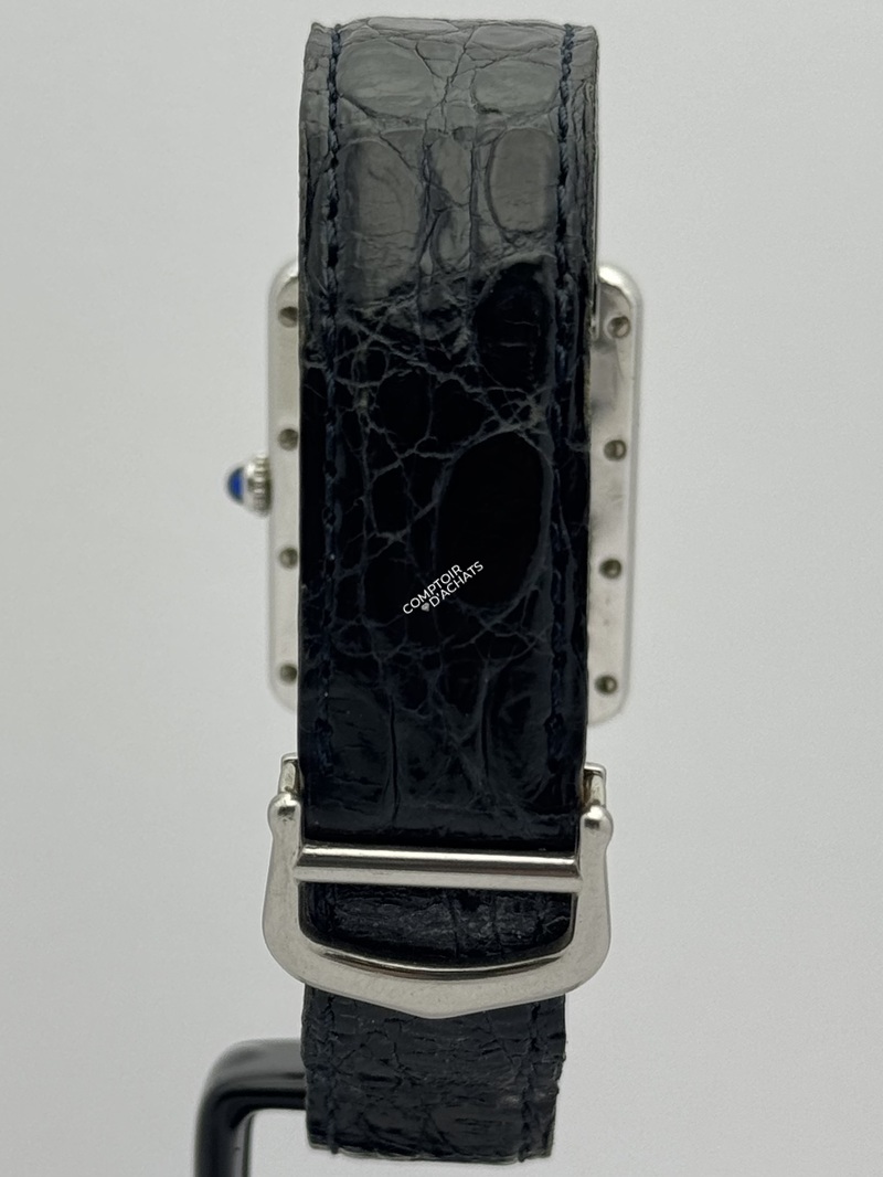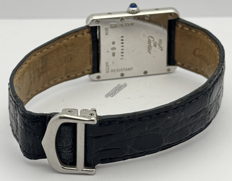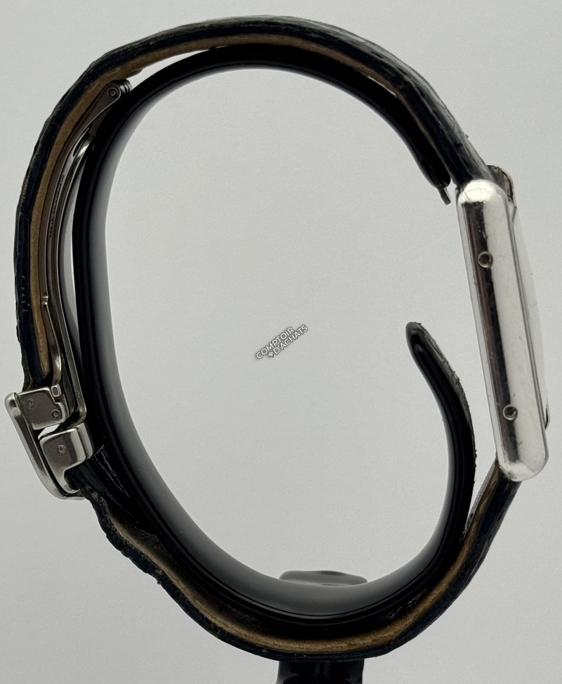 Superbe Cartier Tank réf. 2414, un modèle emblématique de la Maison Cartier, symbole d’élégance et de raffinement. Réalisée en argent massif, cette montre reprend le design iconique de la Tank, avec son boîtier rectangulaire aux lignes épurées et son cadran classique orné de chiffres romains et d’aiguilles bleuies. Une pièce intemporelle qui incarne parfaitement le style Cartier, à la fois sobre, chic et indémodable.