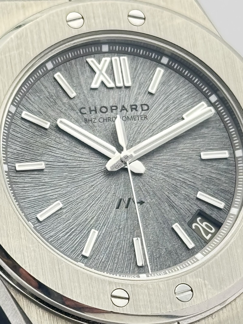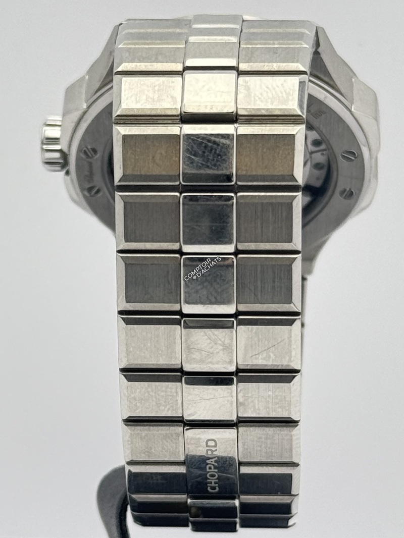 Ce calibre est d'ailleurs certifié Chronomètre (COSC) et son statut haute fréquence est indiqué par la mention "8 Hz" sur le cadran. Elle représente l'alliance parfaite entre l'élégance sportive et l'innovation horlogère de pointe de la Maison Chopard.
