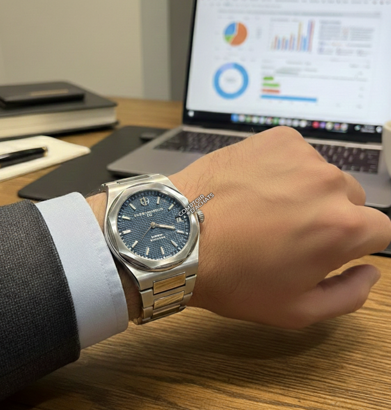 Boîtier : Acier inoxydable, alternance de finitions polies et satinées.
