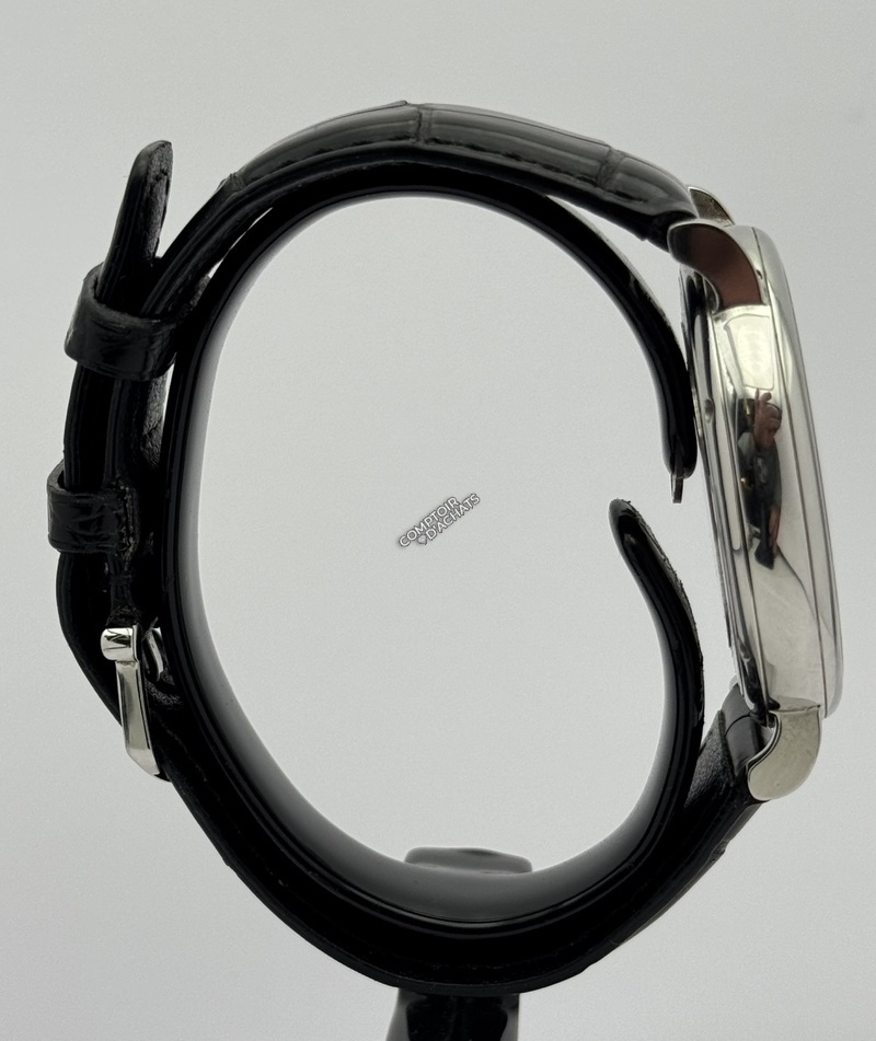 Boîtier : Acier inoxydable poli, diamètre contenu de 40 mm, offrant une présence discrète et parfaite sous la manchette d'une chemise.