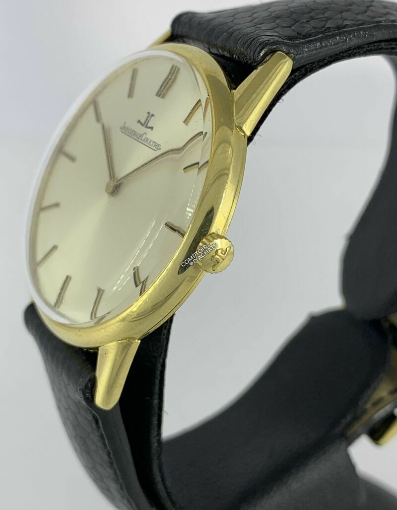 | une montre habillée pour hommes Jaeger-LeCoultre de fabrication suisse avec le numéro de référence 9229, datant du début des années 1970. Il est doté d'un boîtier solide en or jaune 18 carats très élégant qui mesure 34 mm de diamètre et n'a que 7 mm d'épaisseur. Le cadran de cet exemple particulier est disponible dans une finition argentée brillante. Il conserve son look minimaliste grâce à des index non numériques en or poli et à des aiguilles en forme de bâton. À l'intérieur de la montre se trouve confortablement un mouvement à remontage manuel Jaeger-LeCoultre 895 de haute qualité, qui garde avec précision le temps. La couronne est originale et porte le logo Jaeger-LeCoultre. Il est équipé d'un tout nouveau bracelet en cuir noir avec boucle générique plaquée or. . Vous trouverez de légères marques d'usure sur le boîtier en examinant attentivement la montre, mais pas de dommages grossiers. Le boîtier n'est pas poli et donc de forme originale. Le cadran est en très bon état encore compte tenu de son âge, avec seulement une marque mineure sur le bord extérieur vers la position centre. Veuillez bien étudier les photos de cette liste : elles montrent la montre dans l'état dans lequel elle se trouve, sans améliorations numériques pour la rendre plus belles qu'elle ne l'est. Nous sommes sûrs que vous aimez l'honnêteté, et nous aussi. Fonctionnellement, la montre a été fraîchement entretenue et fonctionne parfaitement. Livré avec une boite Jaeger LeCoultre de l'époque , Votre nouvelle montre sera emballée avec le plus grand soin et sera expédiée le plus rapidement possible. Nous expédions généralement le jour même où votre paiement arrive et fournissons une assurance complète ainsi qu'un code de suivi pour tous nos colis. Si vous avez des questions concernant l'article ou nos services, n'hésitez pas à nous contacter. Nous serons heureux de vous aider dès que nous en aurons l'occasion. Pour votre tranquillité d'esprit, toutes nos montres s'accompagnent d'une garantie de 12 mois possibilités de venir l'essayer sur dans notre boutique sur paris 9eme |