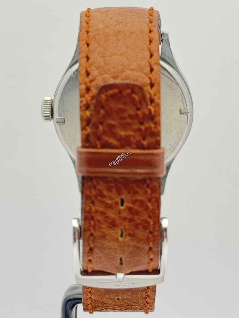 Mouvement : Cette montre est équipée d'un mouvement mécanique à remontage manuel, souvent désigné sous le nom de Lavina, ou plus précisément une ébauche Lavina utilisée par Minerva pour ces contrats.