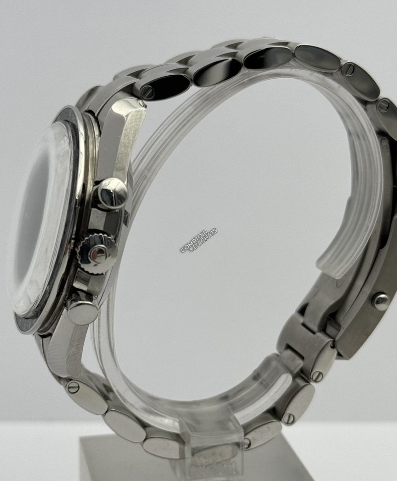 Célèbre mouvement de chronographe à remontage manuel. Un descendant du calibre porté sur la Lune. Finition rhodiée.
