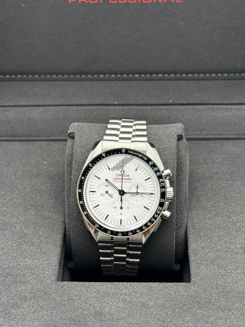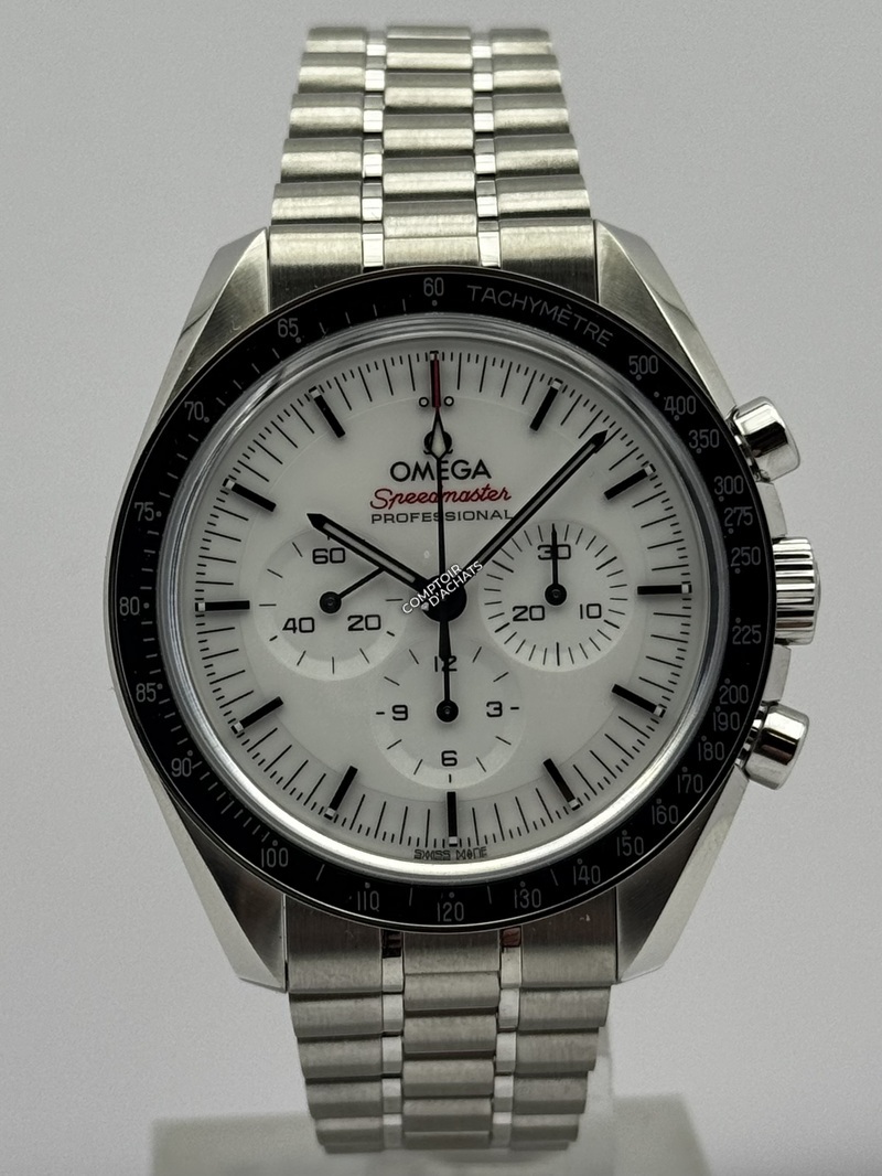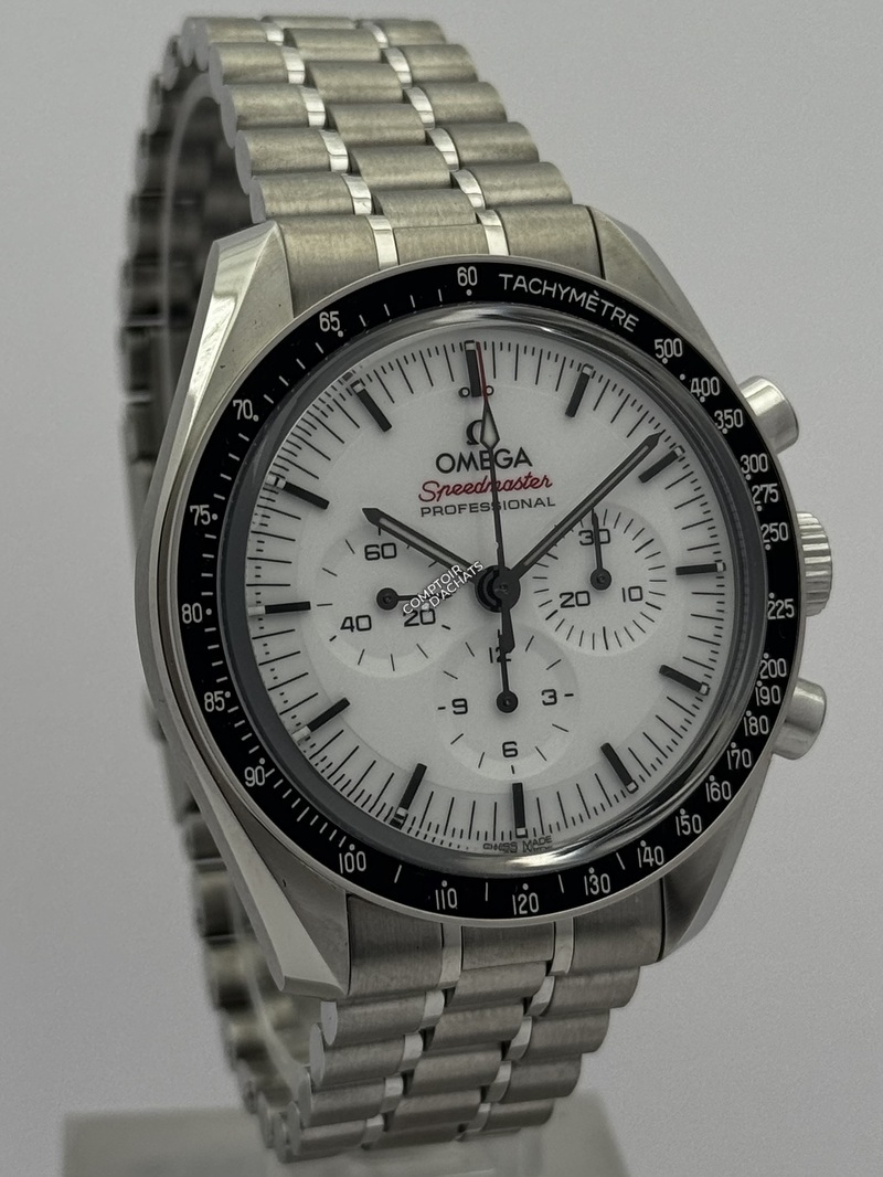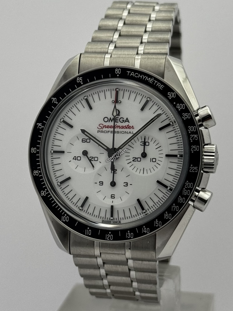 référence 310.30.42.50.04.001 correspond à la célèbre OMEGA Speedmaster Moonwatch Professional Co-Axial Master Chronometer Chronographe 42 mm, avec un cadran blanc, une version très recherchée.