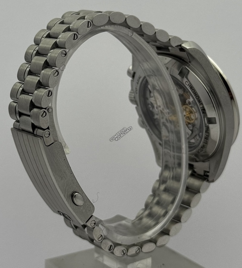 Boîtier et Bracelet : Acier inoxydable de 42 mm, avec un bracelet en acier à 5 maillons et une boucle déployante avec système de micro-ajustement.
