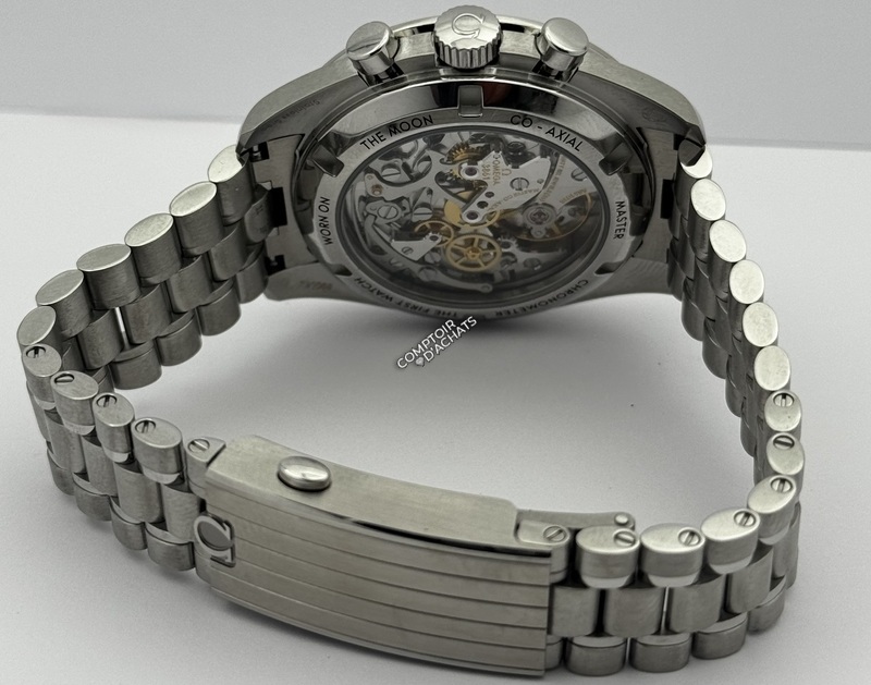 Mouvement : Animée par le Calibre OMEGA Co-Axial Master Chronometer 3861 à remontage manuel.