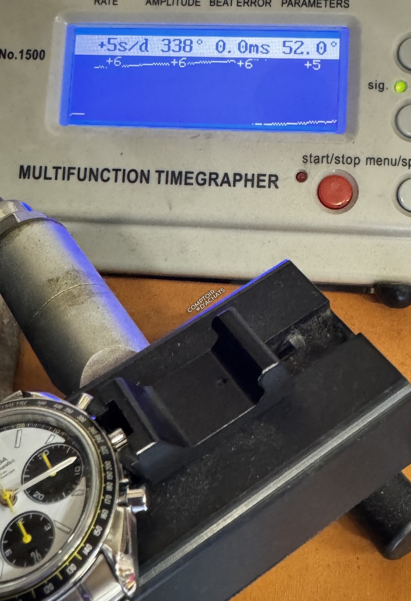 Mouvement Omega Calibre 3330 : chronographe automatique Co-Axial, spiral silicium Si14, roue à colonnes, 52 h de réserve de marche et certification chronomètre COSC.