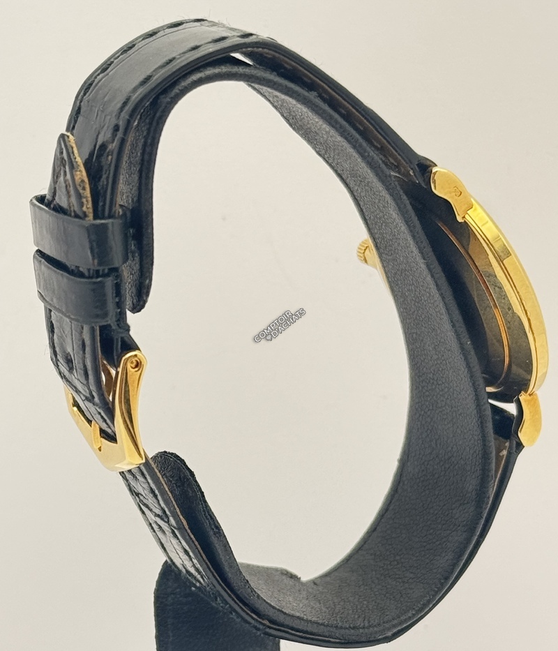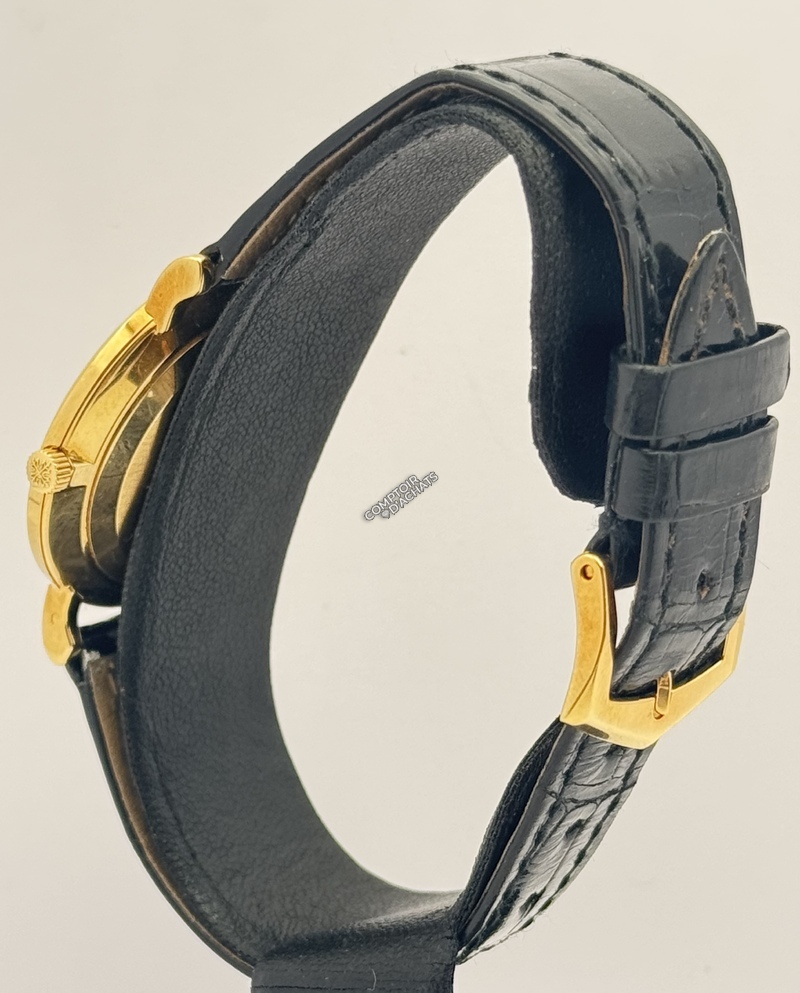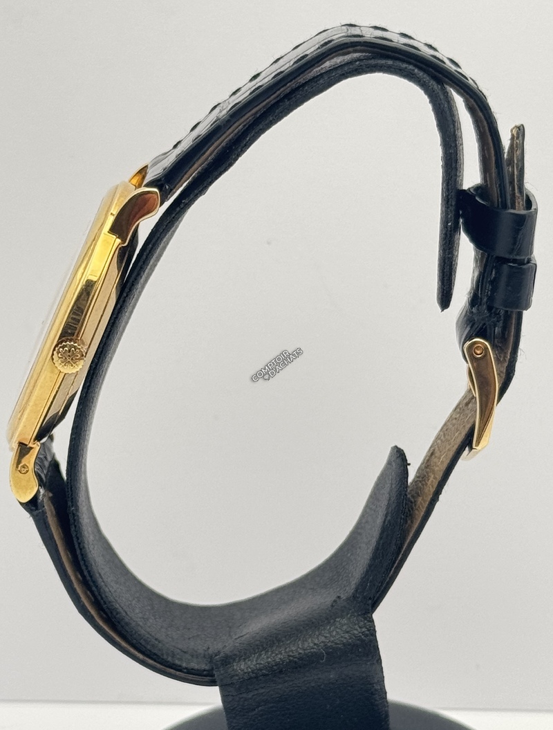 Bracelet : Cuir d'alligator noir brillant avec boucle ardillon originale en or jaune 18k signée Patek Philippe.