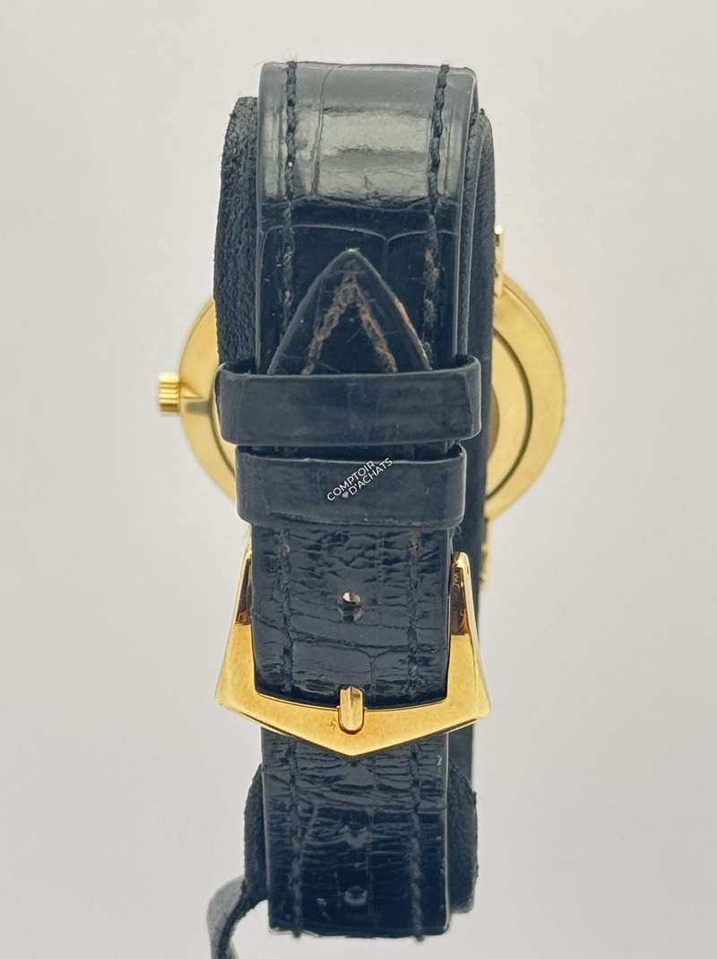 Mouvement : Calibre mécanique à remontage manuel (calibre 215 PS), ultra-plat et d'une précision chronométrique.