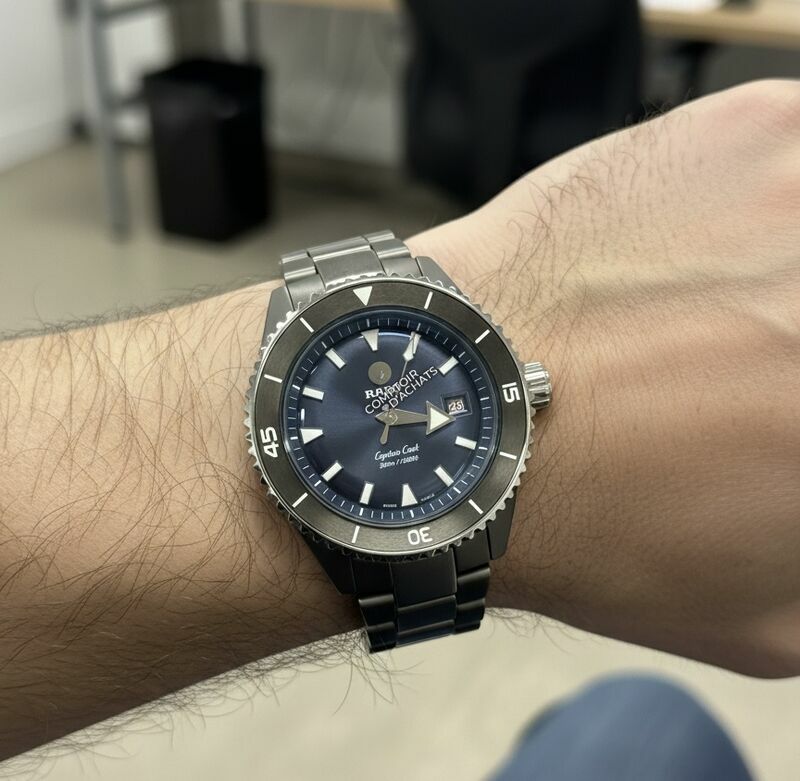 Avec ses lignes modernes et sportives, cette plongeuse professionnelle allie robustesse, précision et confort au poignet.