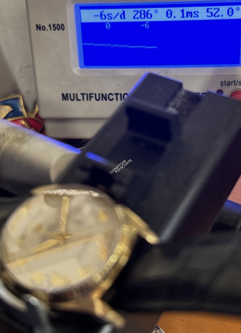 Mouvement : Calibre automatique 3055. Il permet de régler la date rapidement via la couronne (Quickset), mais le jour doit toujours être réglé en faisant tourner les aiguilles.