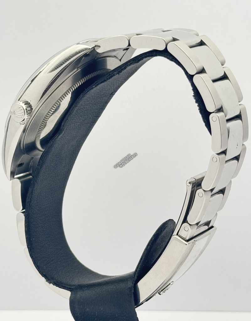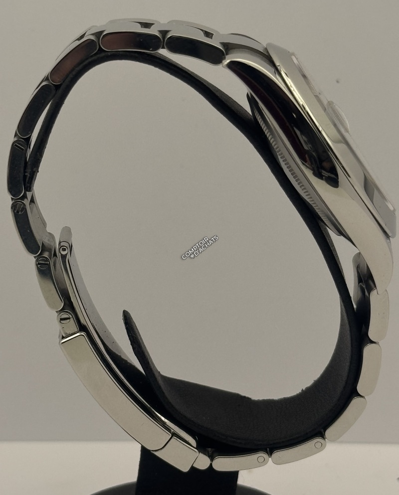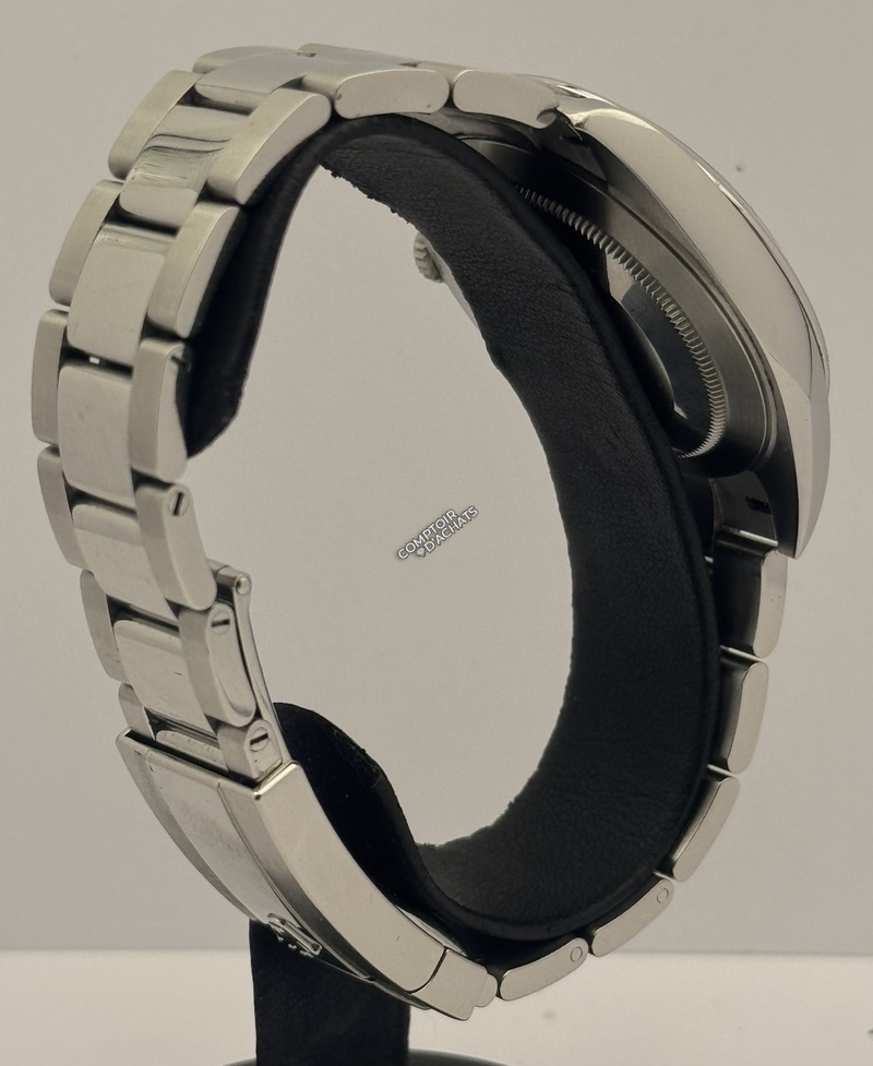 Bracelet : Type Oyster à trois mailles larges et plates. Les maillons centraux sont polis, tandis que les maillons extérieurs sont satinés.