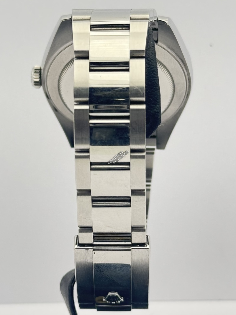 Boîtier : Diamètre de 41 mm en acier Oystersteel (alliage 904L ultra-résistant à la corrosion).