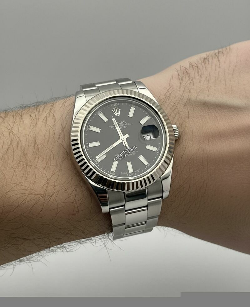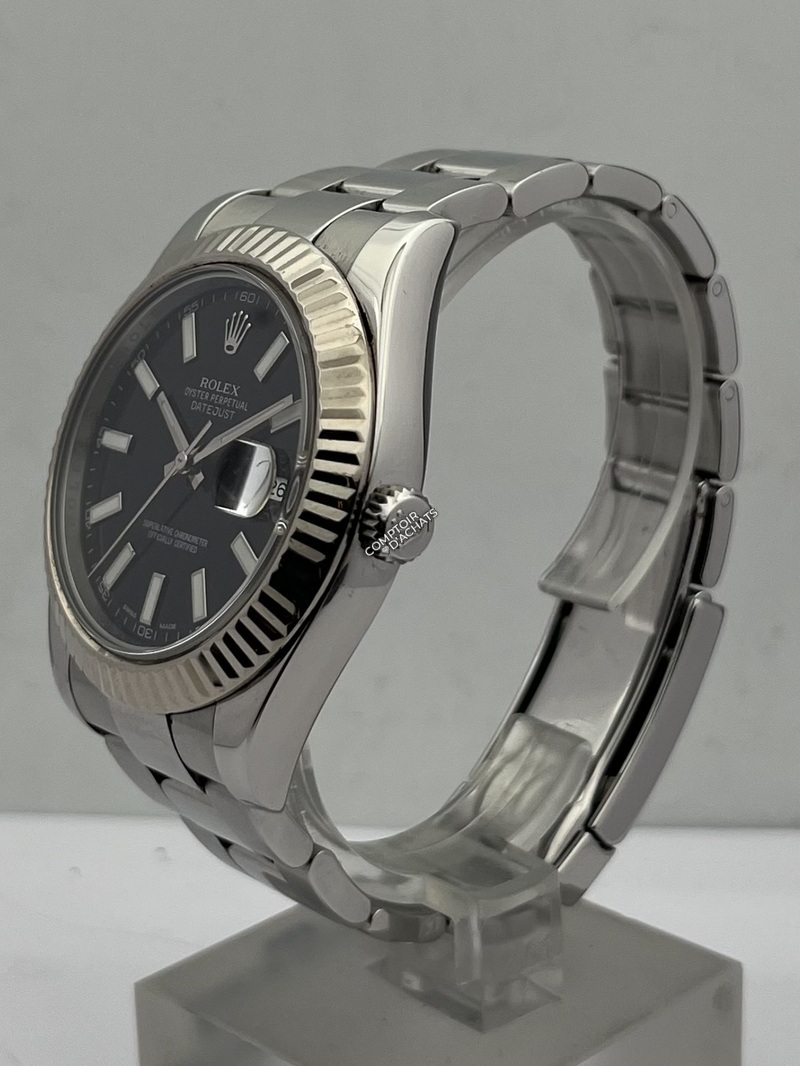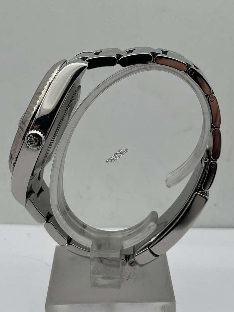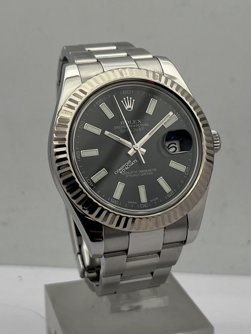 La Rolex Datejust II 116334 est une montre élégante et contemporaine, reconnaissable à son boîtier Oystersteel 41 mm et à sa lunette cannelée en or blanc 18K poli. Ce modèle Swiss Made est animé par le calibre automatique Rolex 3136, certifié chronomètre COSC Superlative, offrant une réserve de marche d’environ 48 heures et la fonction stop-seconde pour un réglage précis.