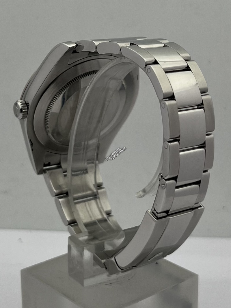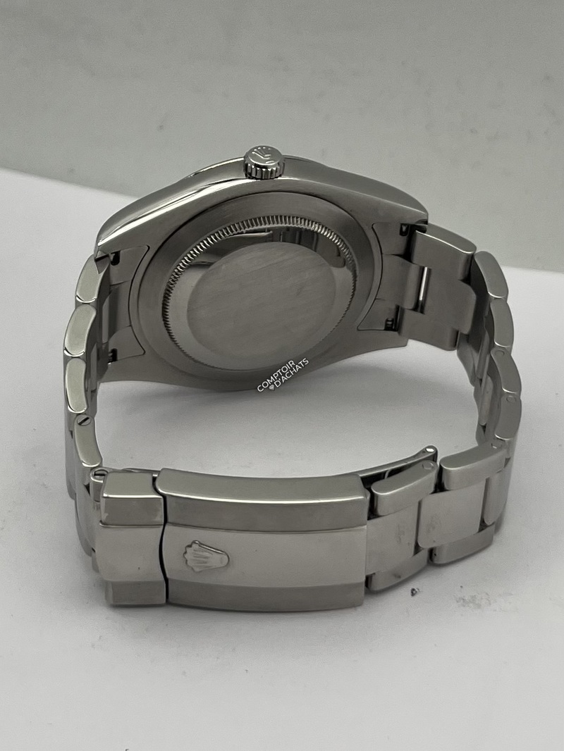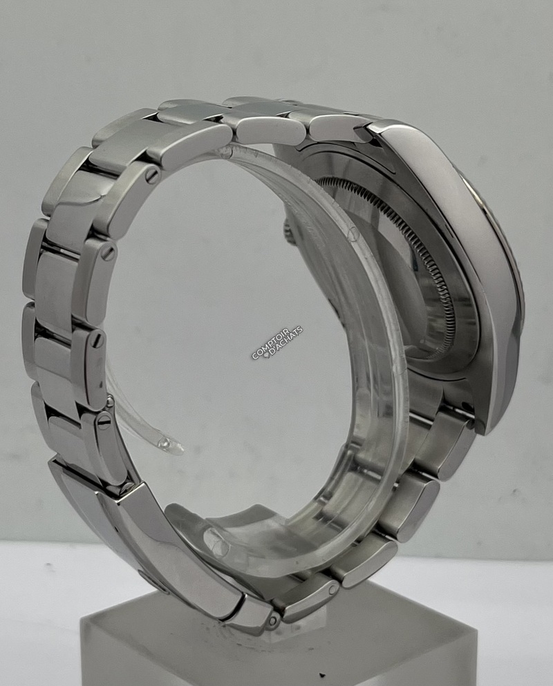 Le bracelet Oyster en acier 904L satiné et poli est équipé d’un fermoir Oysterclasp avec rallonge confort Easylink de 5 mm.