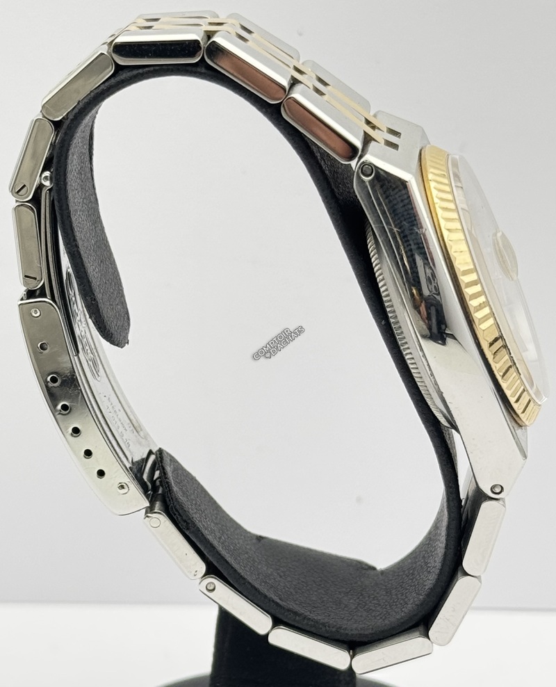 Contrairement aux Datejust classiques aux lignes courbes, la 17013 possède un boîtier anguleux et massif en acier inoxydable, inspiré par les tendances de design "sport-chic" de l'époque (similaire à l'esprit d'une Royal Oak).