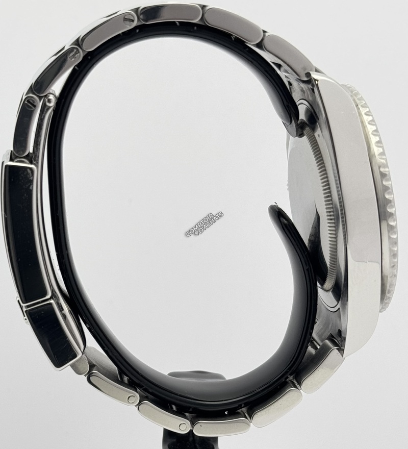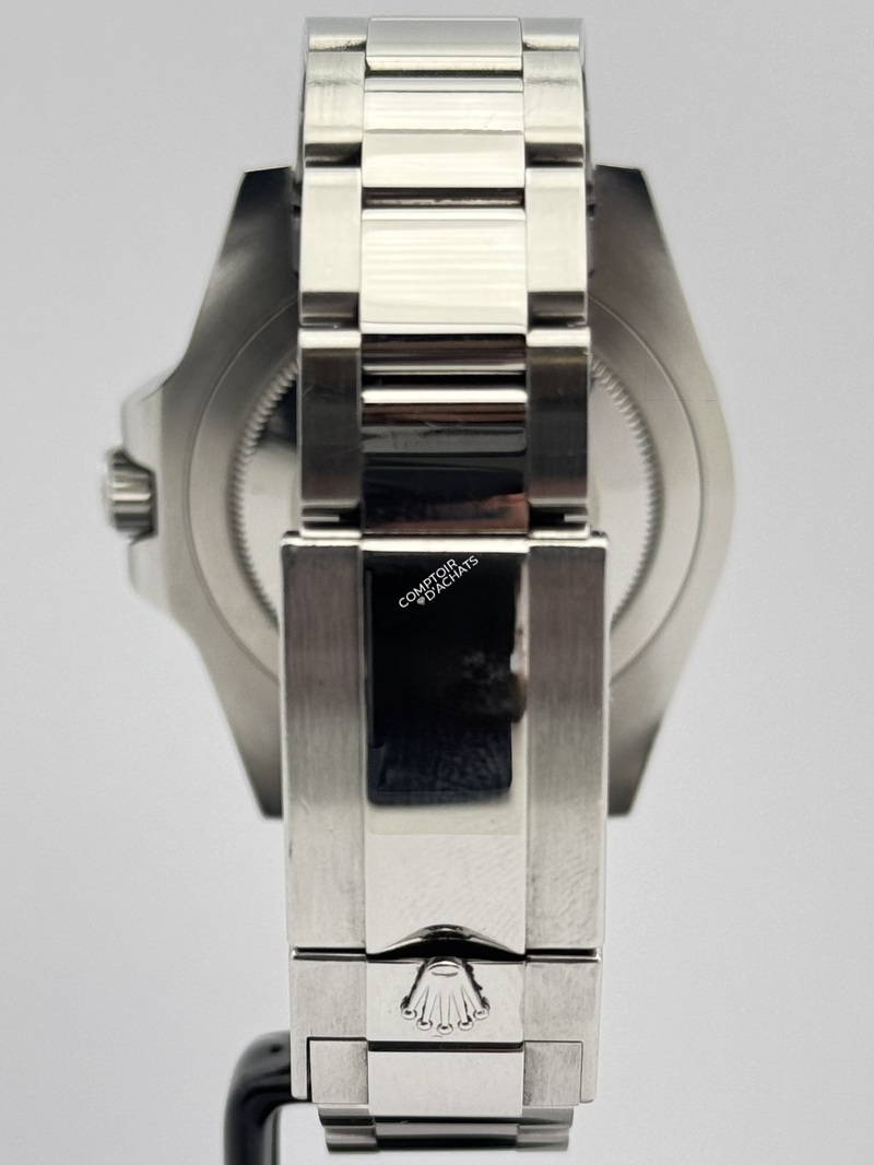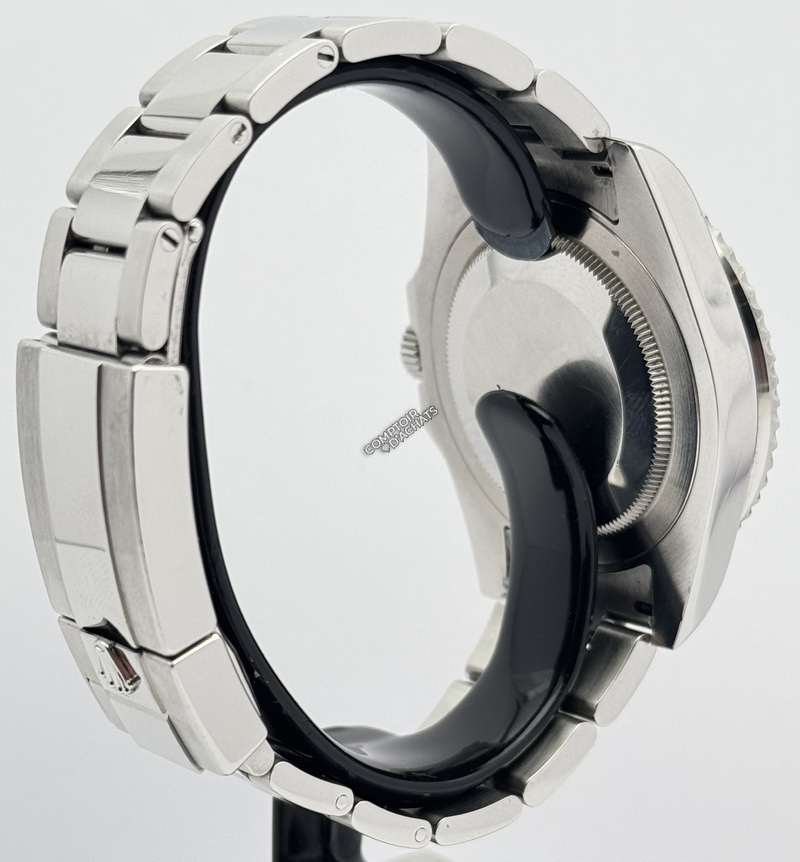 Son boîtier en acier Oystersteel de 40 mm est caractérisé par sa célèbre lunette tournante bidirectionnelle en Céramique bicolore (Cerachrom) Bleue et Noire (BLNR).