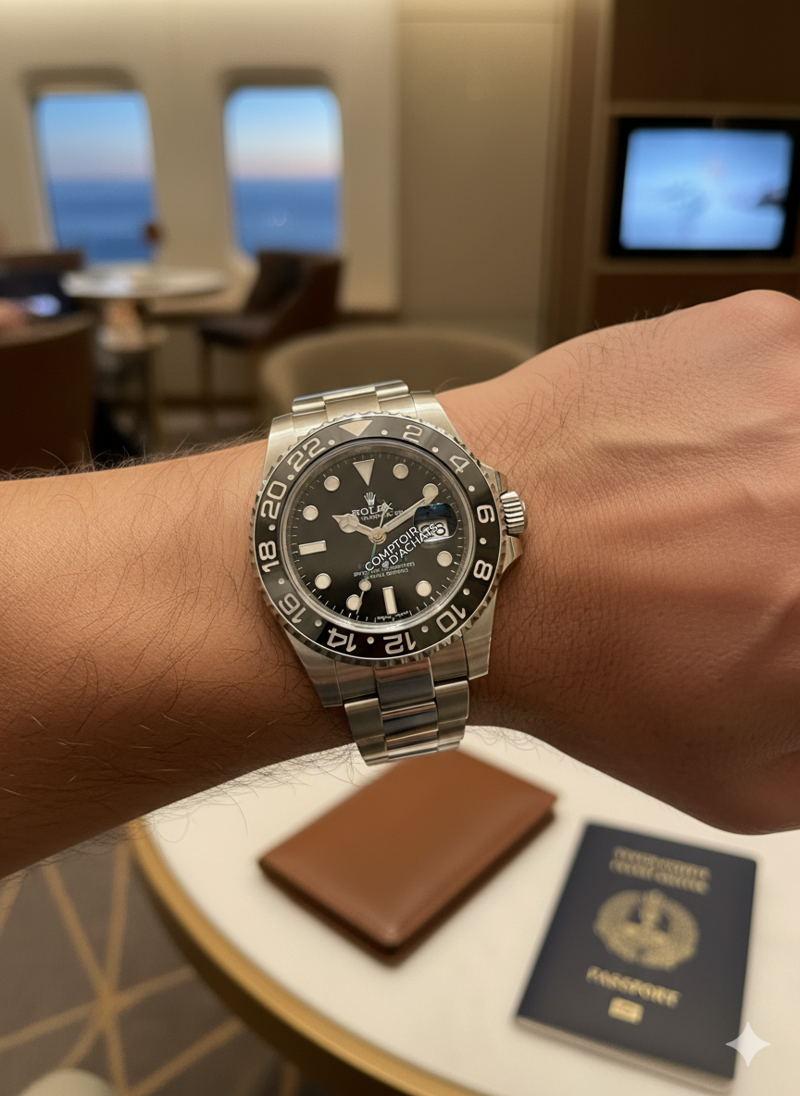 La 116710LN est reconnue pour sa sobriété, son équilibre entre la sportivité des matériaux modernes et l'élégance du noir, ce qui en fait un classique moderne très recherché par les collectionneurs et les voyageurs avertis.