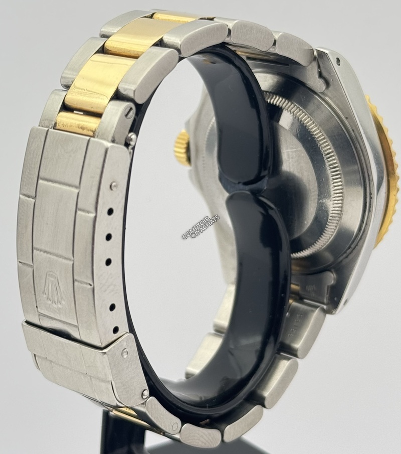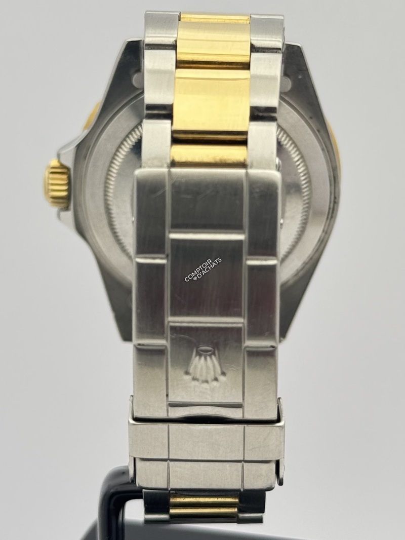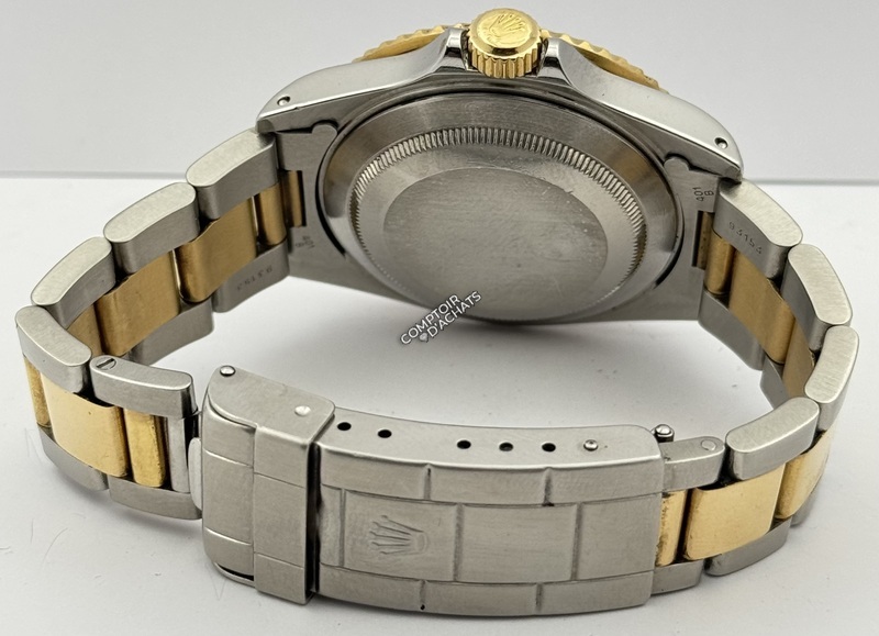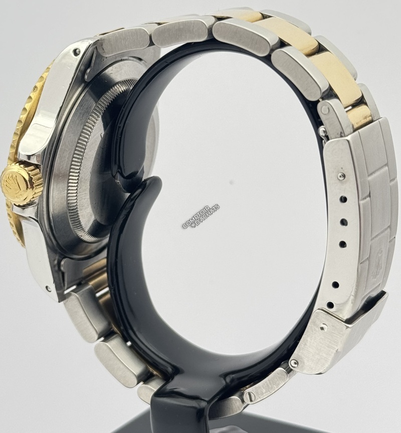 Bracelet : Oyster à trois mailles. Configuration : Les maillons centraux sont en or jaune massif, tandis que les maillons extérieurs sont en acier brossé.
