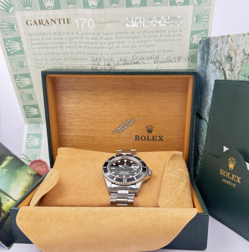 Cette pièce est proposée en Full Set, incluant sa boîte, sa sur-boîte, ainsi que son certificat de garantie original (papiers punchés) et ses divers livrets d'époque.