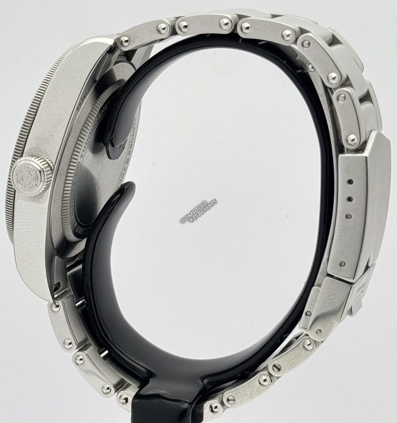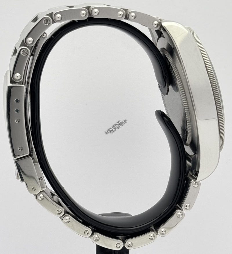 Elle possède une lunette tournante unidirectionnelle en acier, avec disque en aluminium éloxé bleu mat gradué 60 minutes et chiffres argentés. Le cadran est bleu bombé, protégé par une glace saphir bombée.