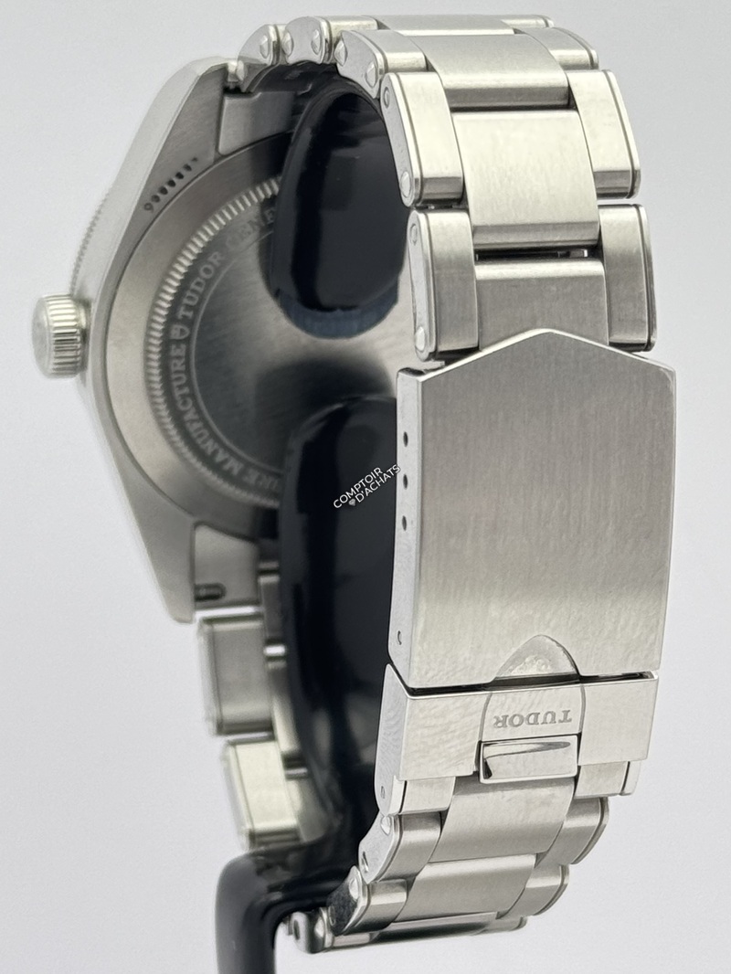La couronne de remontoir vissée en acier est ornée de la rose TUDOR en relief, avec tube de couronne en acier satiné circulaire. L’étanchéité est garantie jusqu’à 200 m.