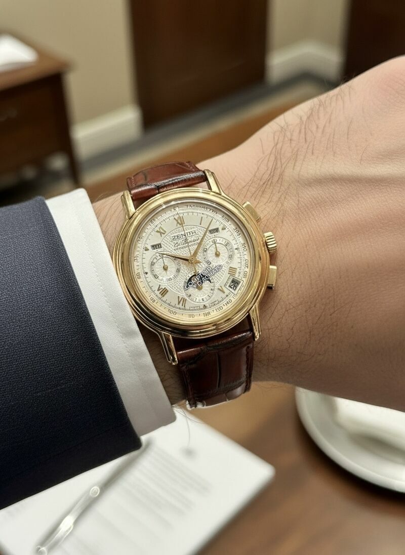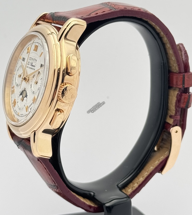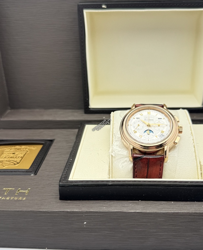 Pourquoi elle est prisée : C'est une pièce de collection qui incarne le savoir-faire historique de Zenith. Elle est particulièrement appréciée pour la densité de ses complications logées dans un boîtier aux proportions élégantes et discrètes.