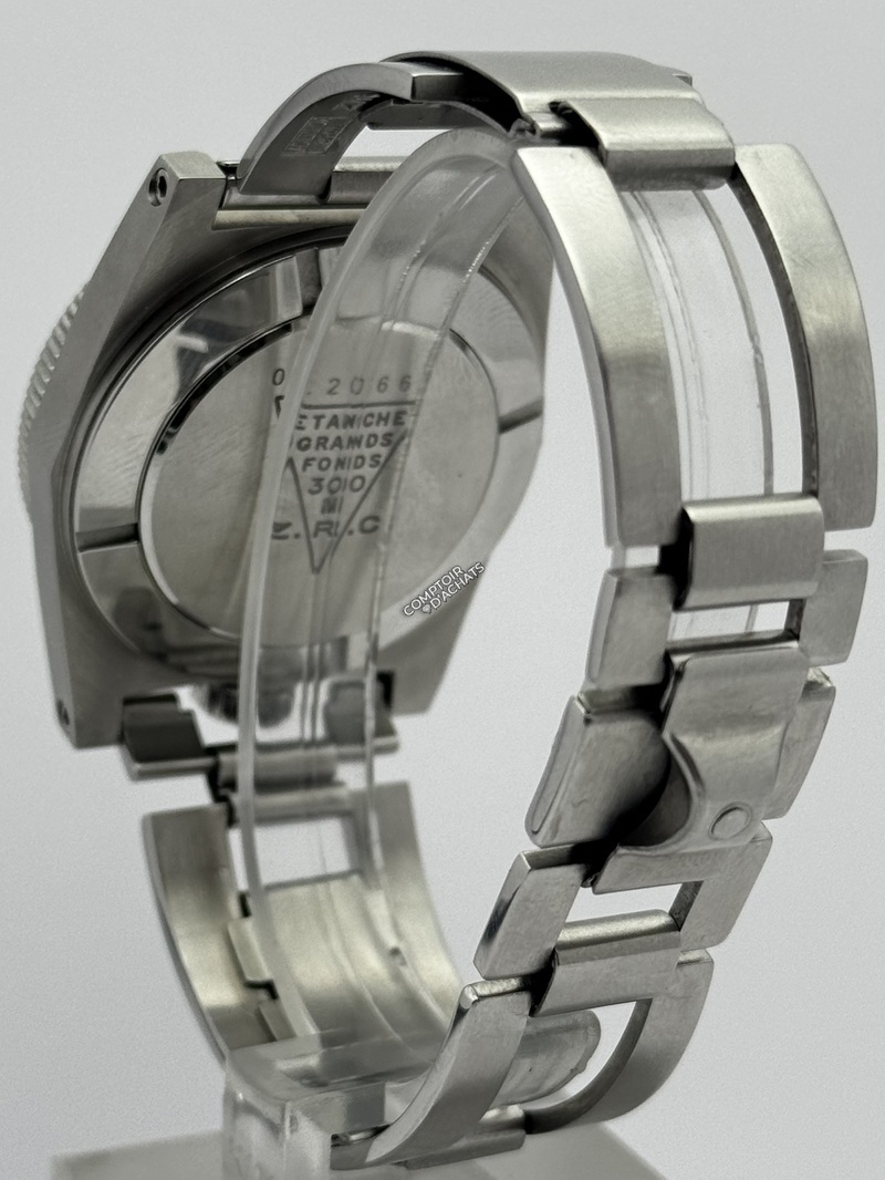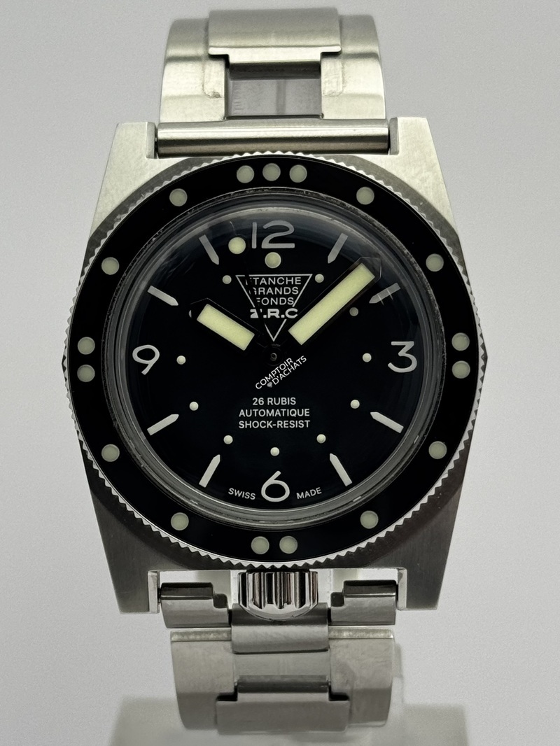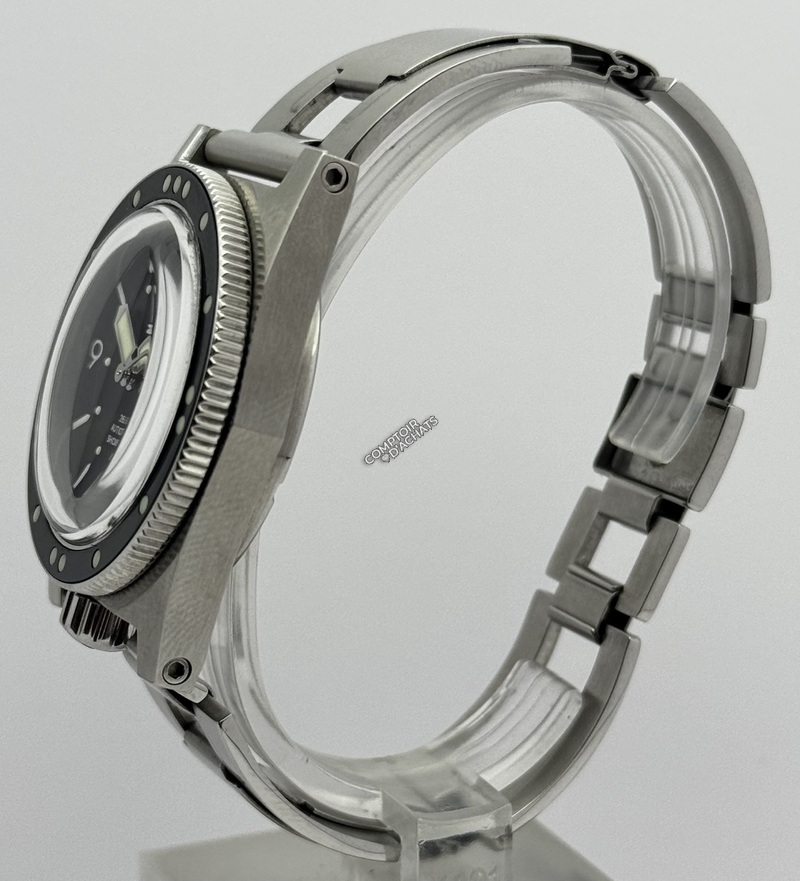 Cette réédition de 39 mm reprend l'ADN du modèle iconique des plongeurs de la Marine Nationale des années 60 : boîtier hexagonal unique, couronne à 6h (Crown Protection System) et un design sport-chic intemporel sur son confortable bracelet acier.